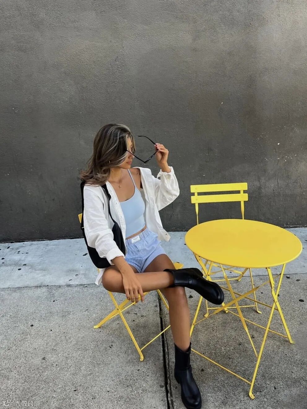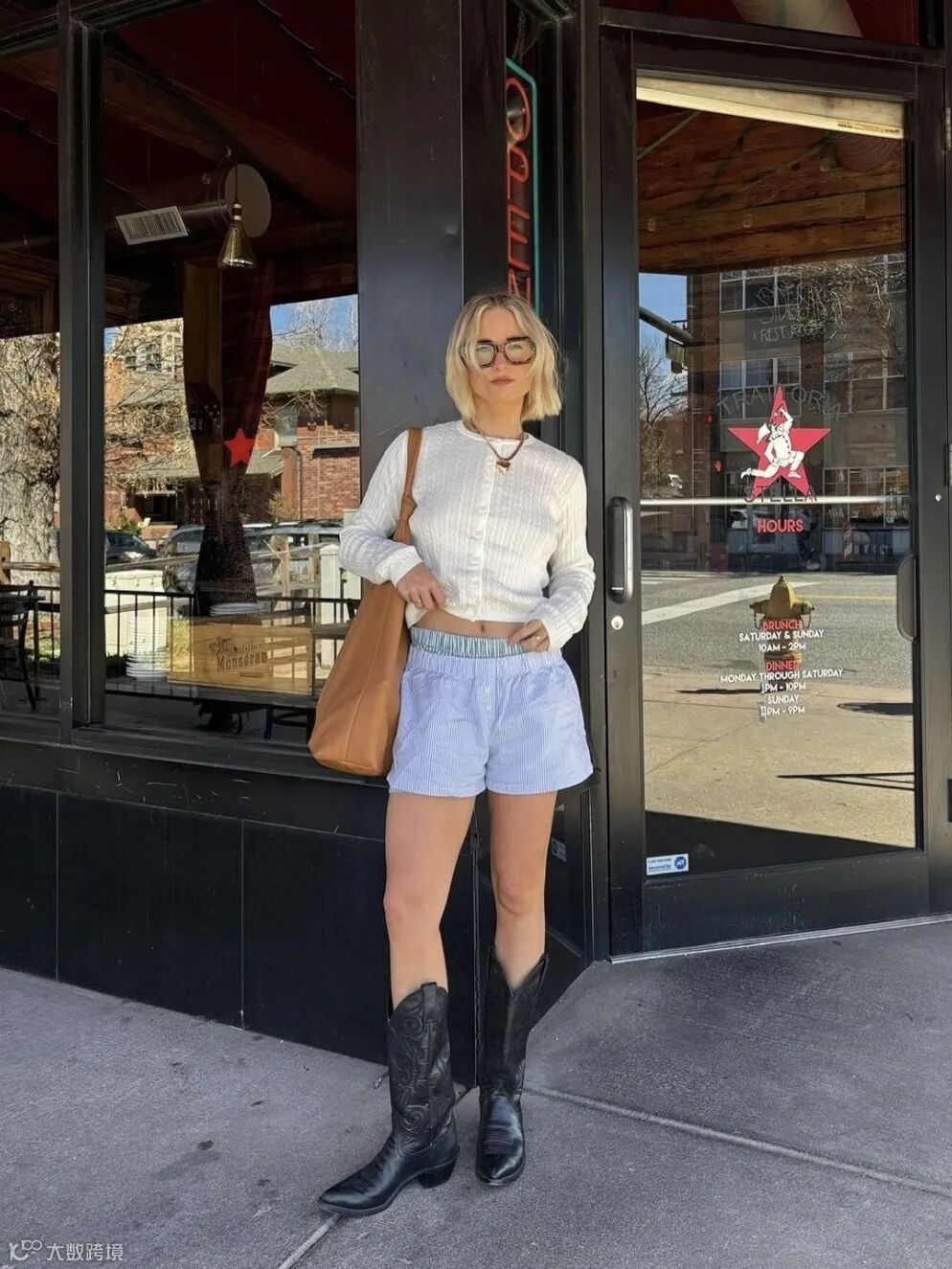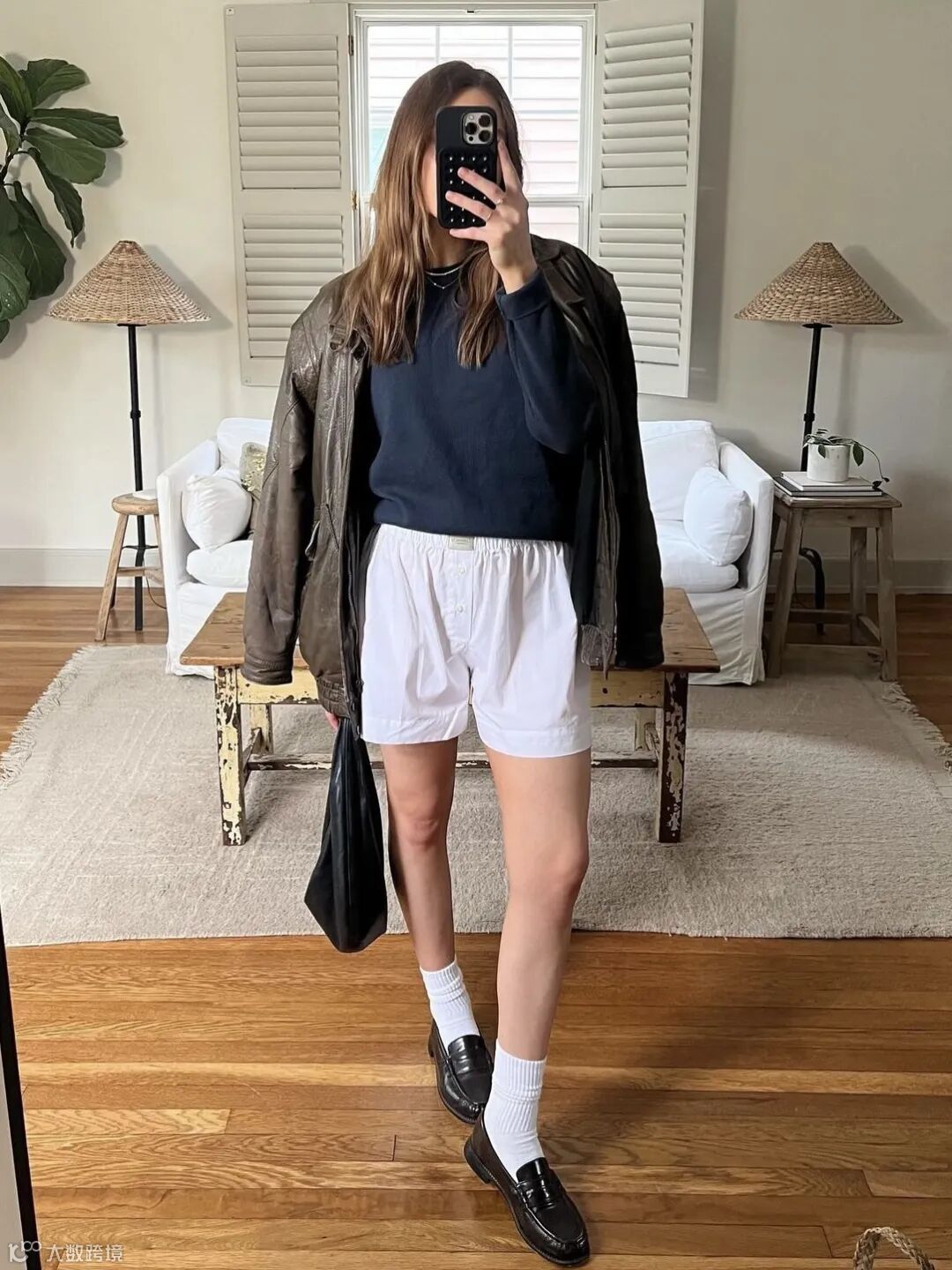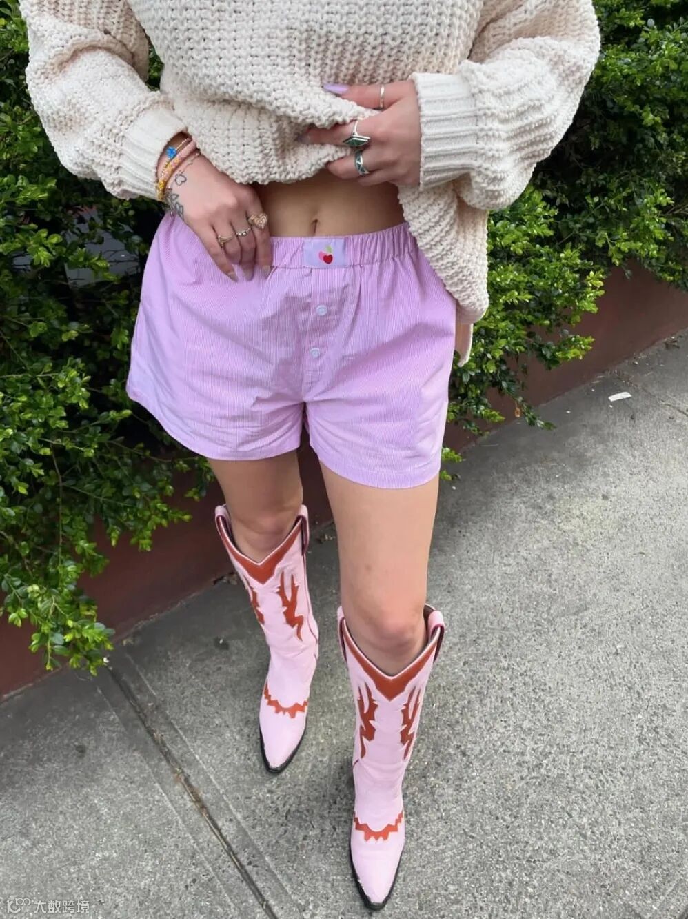 可别小看这小小一条男生四角裤,搭配起来时髦感丝毫不拉垮。在男生身上平平无奇,在女生身上则时髦的刚刚好。