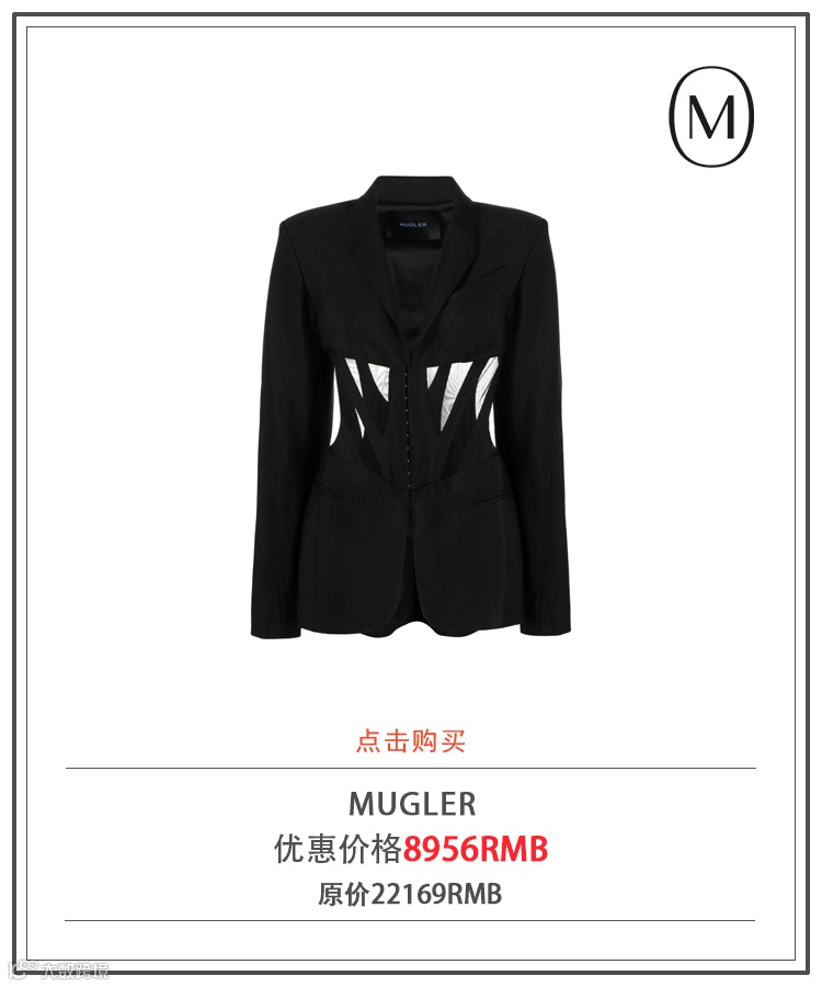这是 Mugler 首次出现在我们的每周榜单上,但该品牌的受欢迎程度并非凭空而来。根据我们的数据,在 2023 年的大部分时间里,Mugler 一直位列每周最畅销品牌前 20 名。本周 Mugler 销售额的增长可归因于我们合作伙伴的折扣优惠。Mugler 最受欢迎的款式——西装外套、不对称连衣裙和半身裙最高可享受 4折优惠。