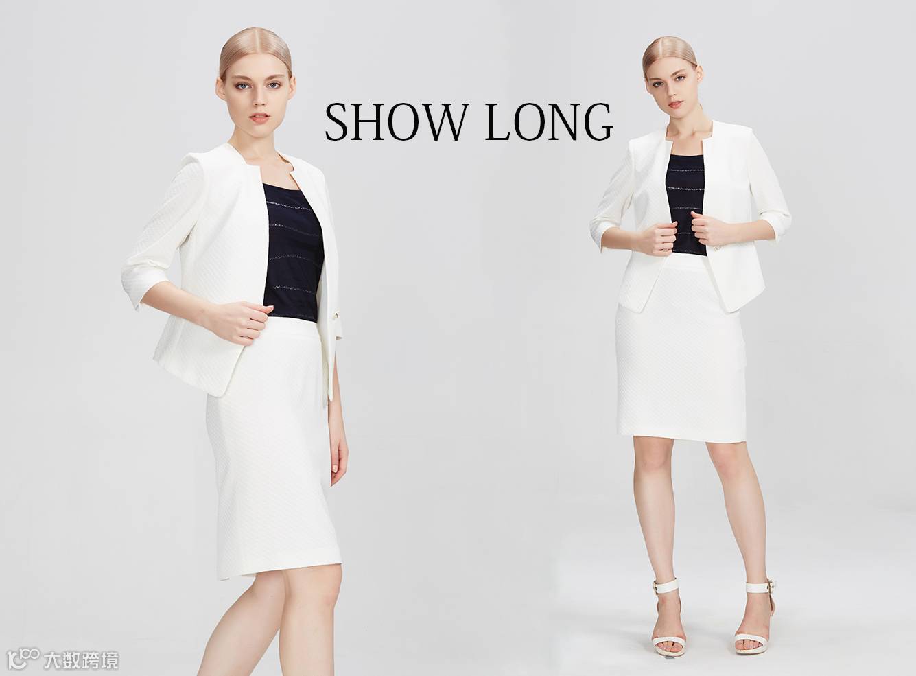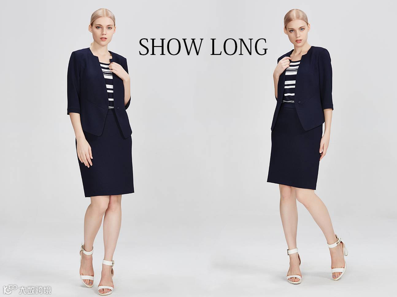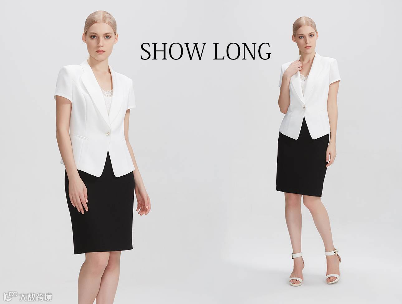 时尚的领型设计附着与简约大方的款式之上起到了画龙点睛的作用。修身的短裙突显职业女性的干练、迷人。