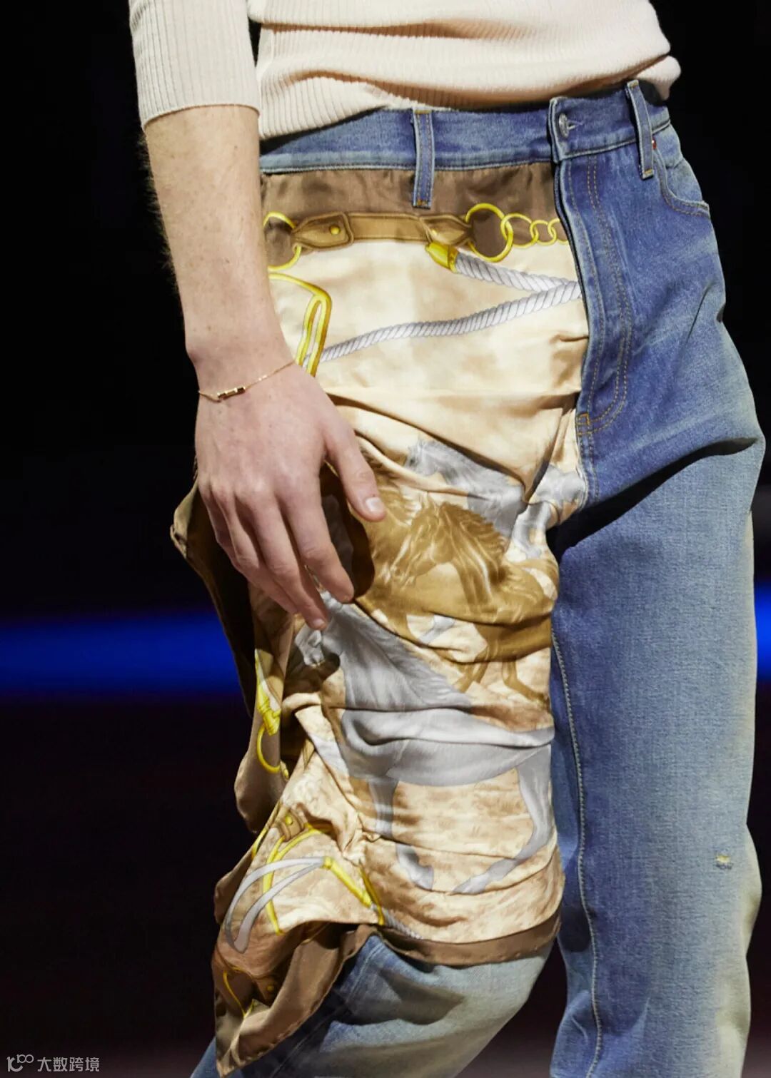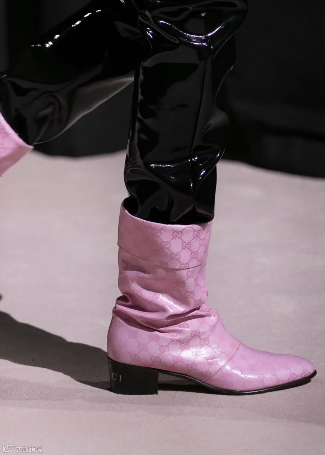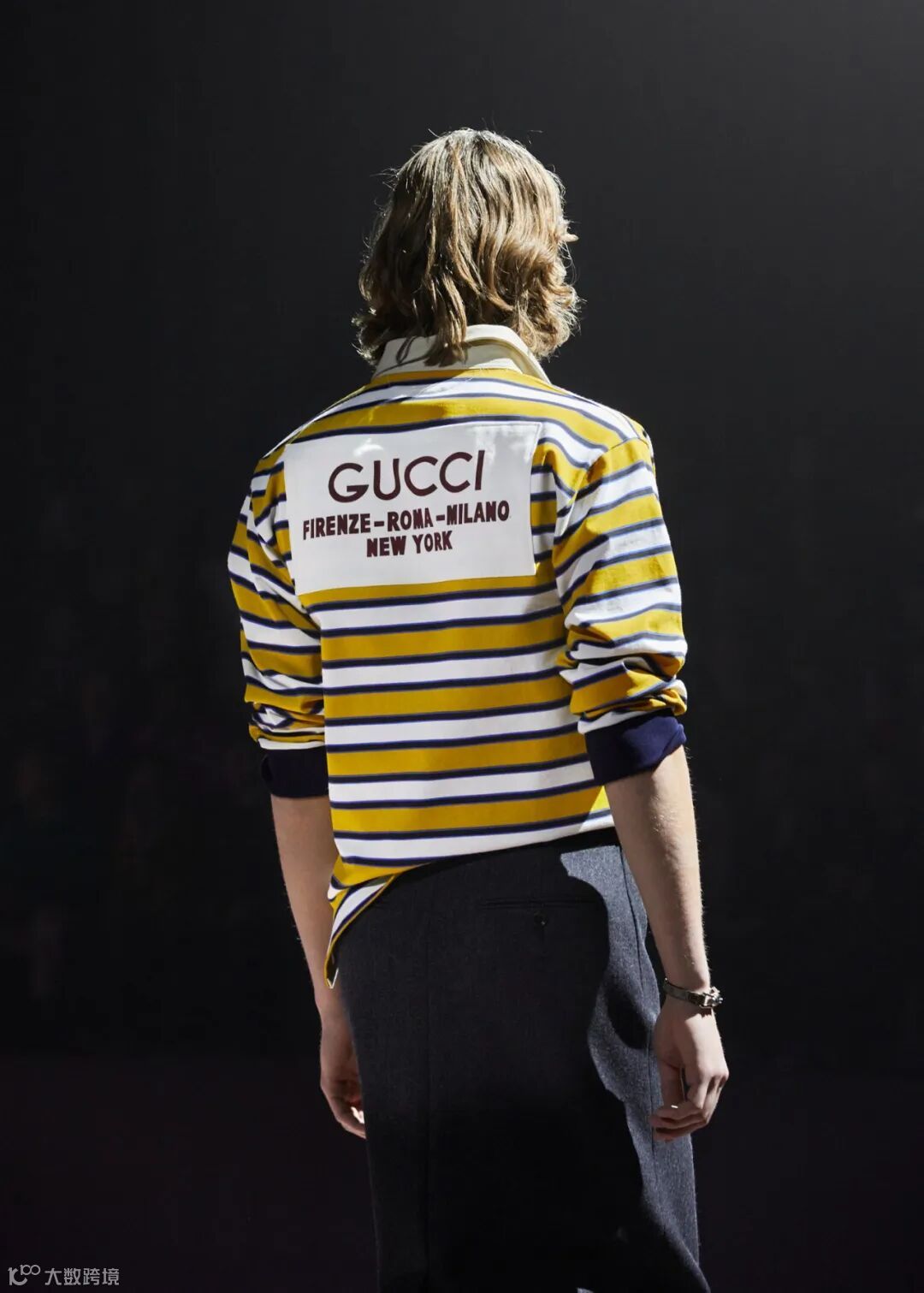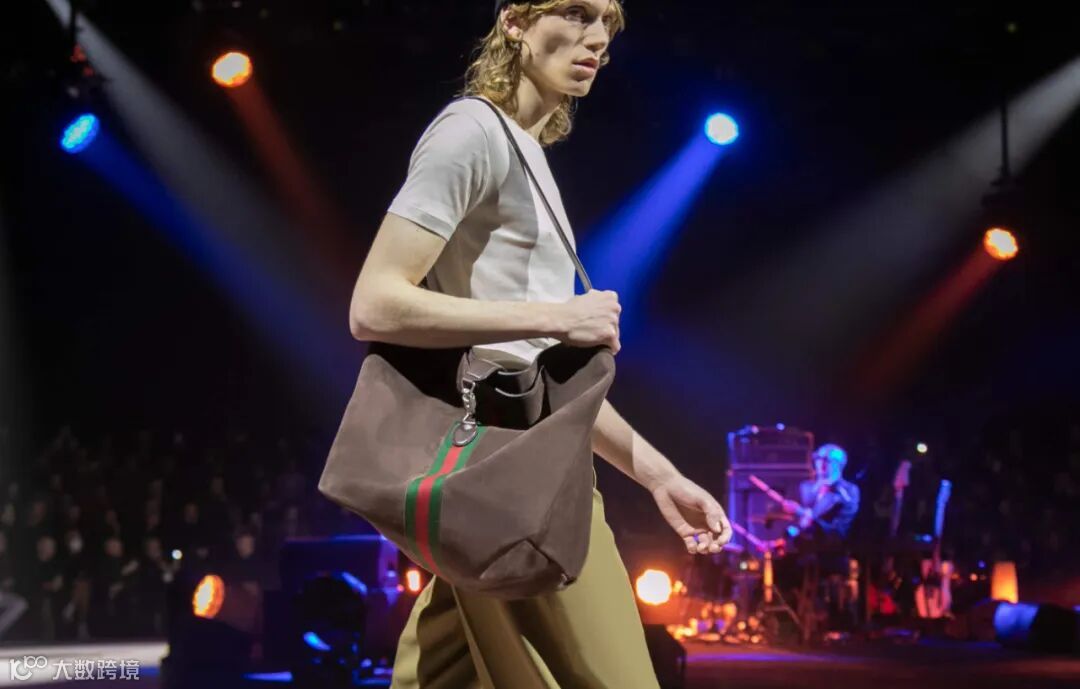 在这个象征古驰核心创意团队的协作纺车的圆阵型舞台上,大秀于焉展开。慵懒的剪裁与21世纪初流行的机车服和运动服和谐相融;超大造型西装与外套擦地而过;经典款式在创意之中迸发变幻莫测的别致形态,裤装亦可变身为富有垂坠感的拖地裙,若隐若现地展现腿部;带有可拆卸元素的西装衬托穿着者的不同个性;聚光灯下熠熠生辉的亮片展现品牌核心工艺。
