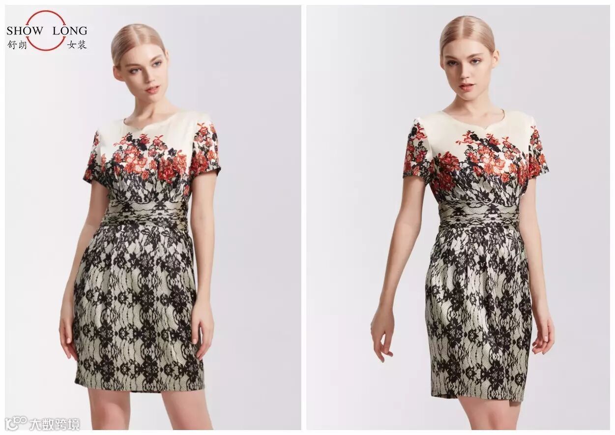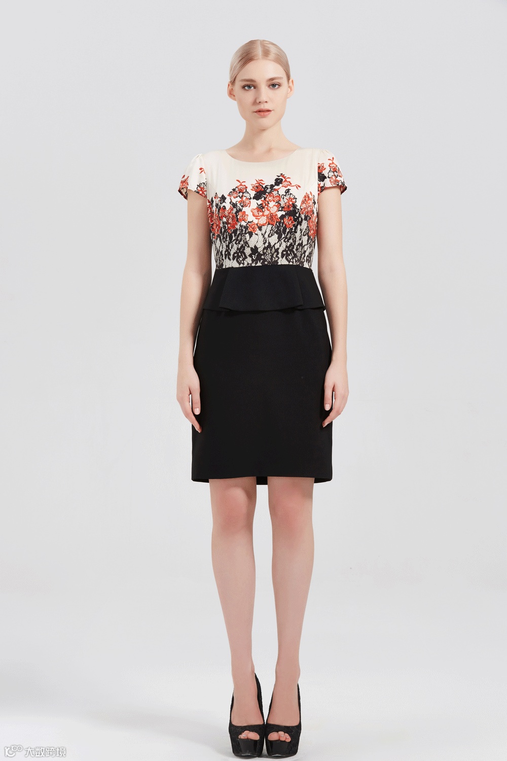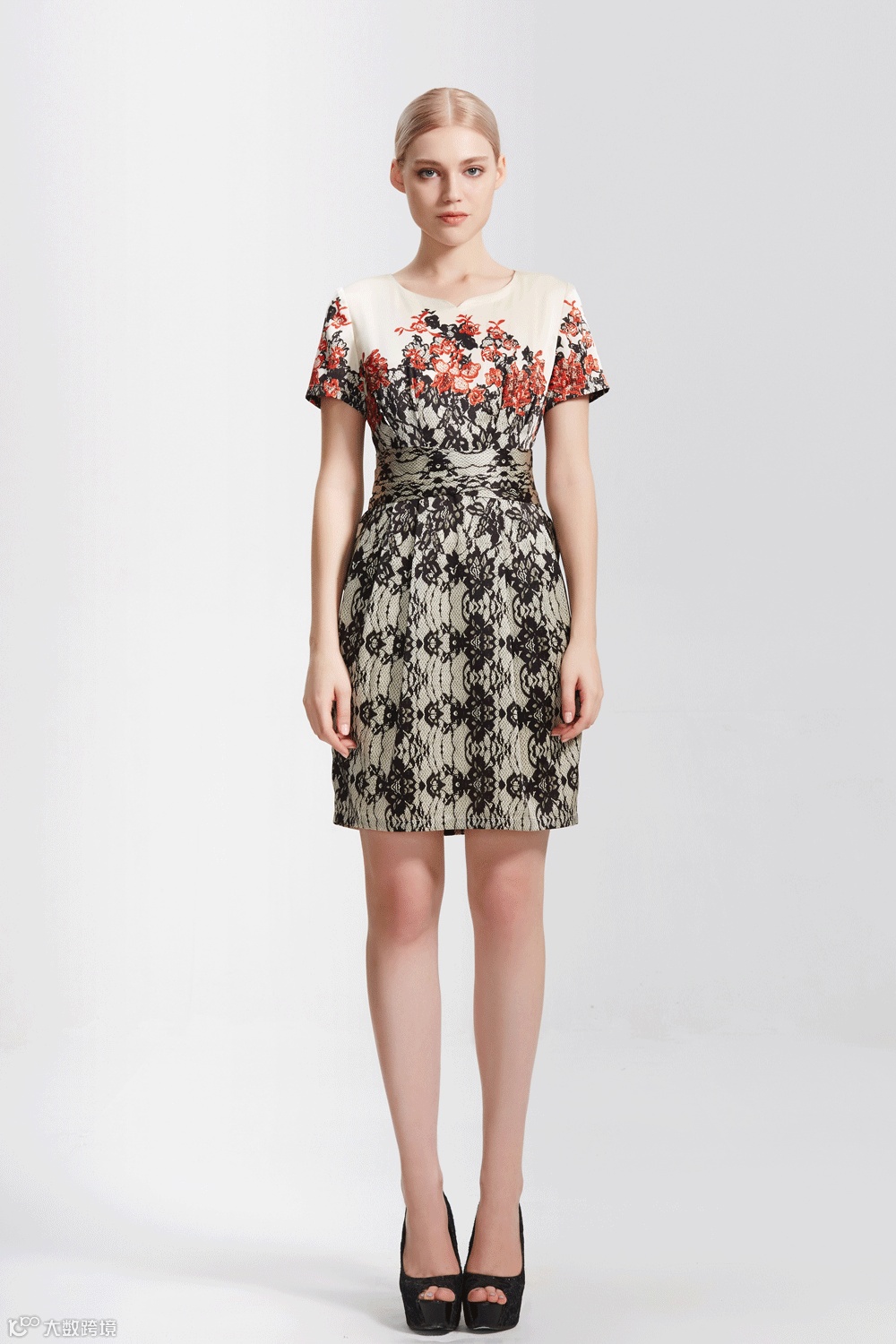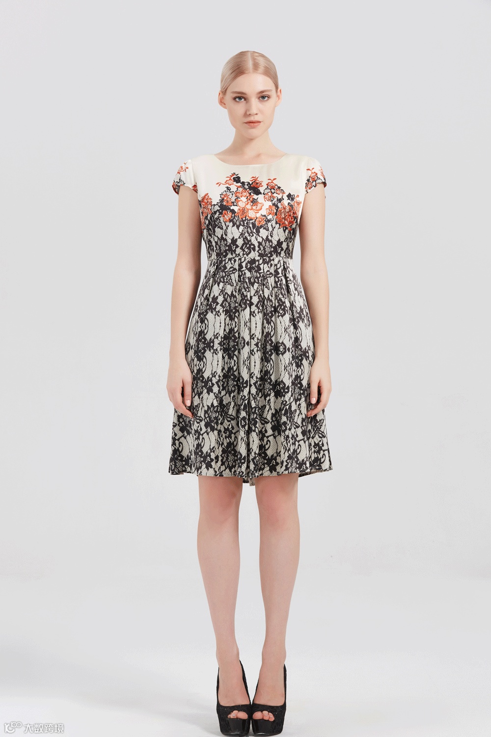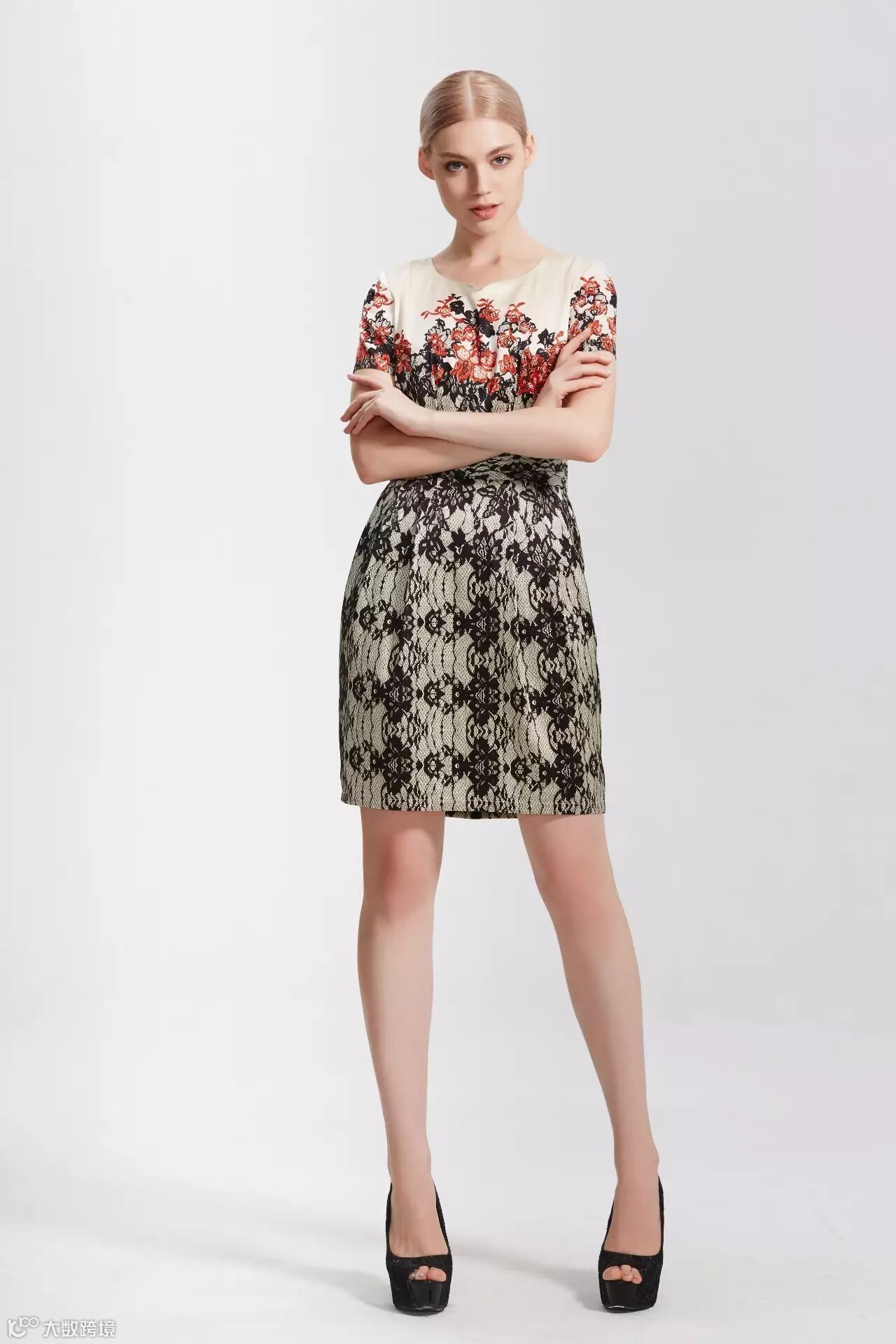 黑米颜色的搭配经典不会过时,加之红色花朵更是起到了画龙点睛的作用。蕾丝印花与桑蚕丝的面料相结合,使服装本身就成为了一件高贵艺术品。
