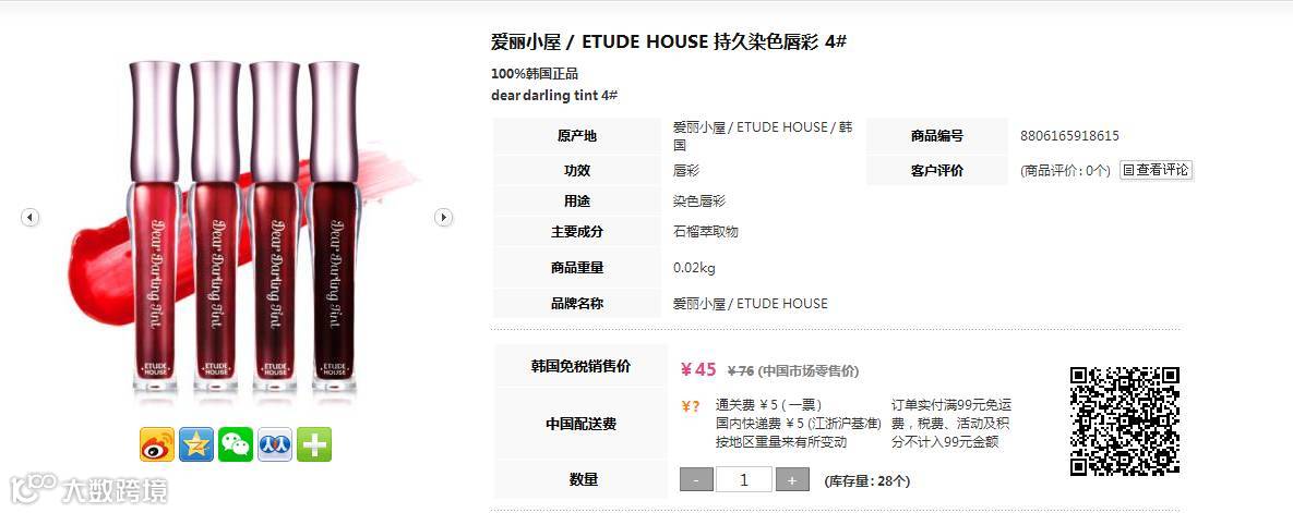 店铺名称:O2O跨境韩国购