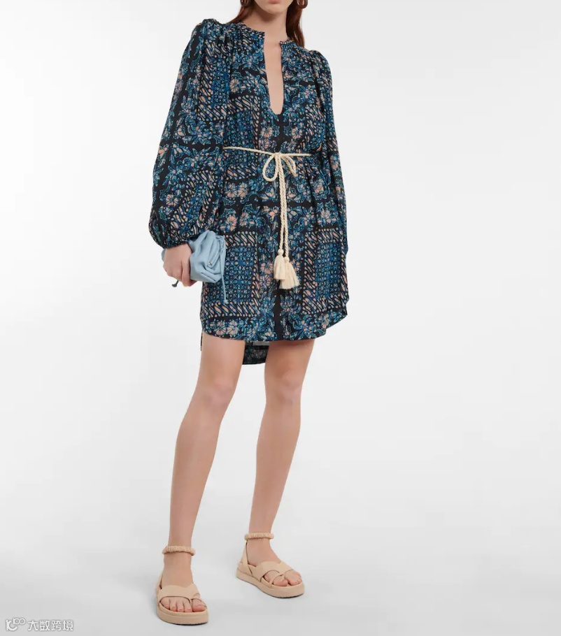 ULLA JOHNSON 这款“Nerissa”印花沙滩罩衫裙甄选透气的棉质混纺面料剪裁而成,采用深V领、气球袖和拧绕腰带设计。