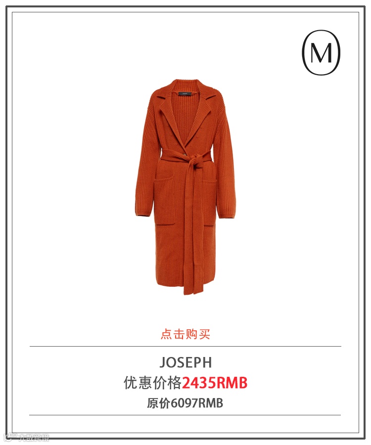 JOSEPH 这款红色开衫甄选棉质、羊毛与羊绒混纺面料剪裁而成,采用长款廓形,搭配正面纽扣、干练的翻领和配套的腰部系带设计,穿着舒适,同时不乏低调优雅的风格。