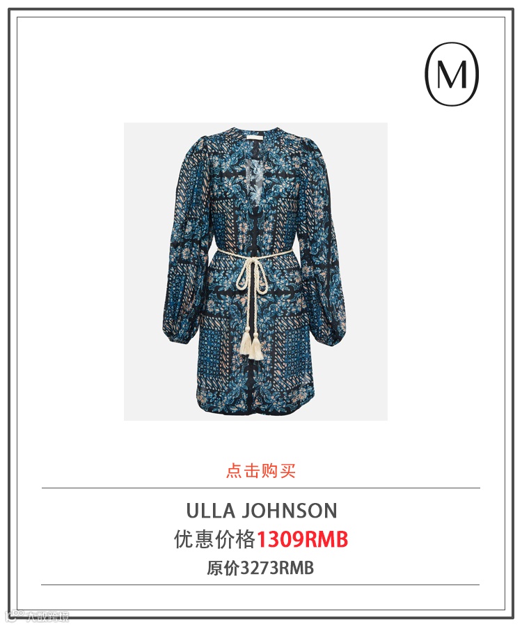 ULLA JOHNSON 印花海滩罩衫裙