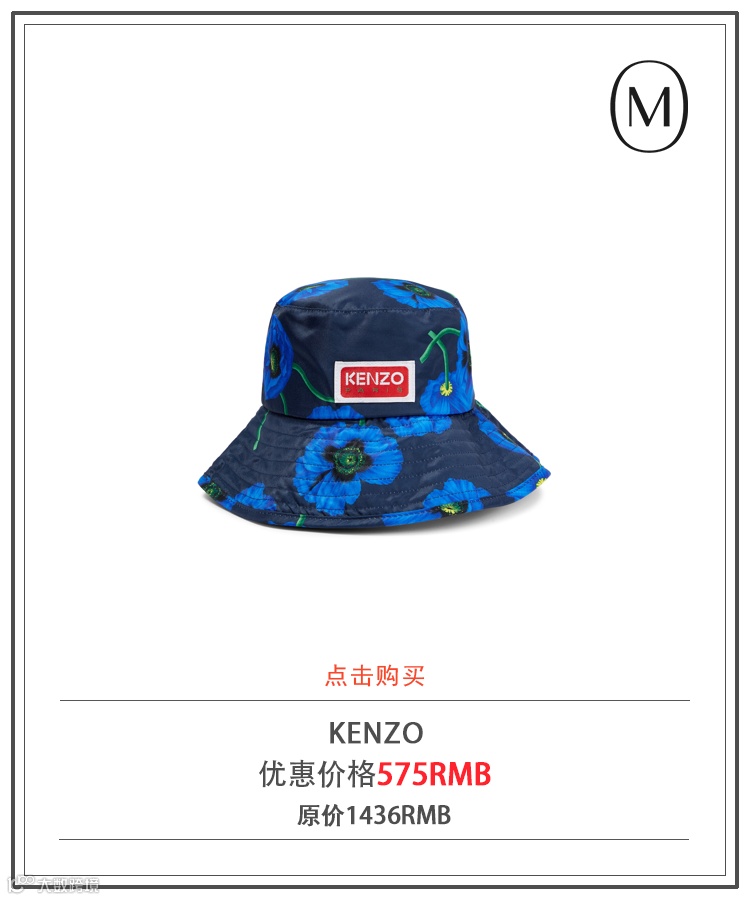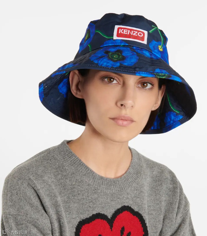 KENZO 这款渔夫帽通体饰有品牌标志性的Poppy印花,搭配Logo贴饰与缝线宽帽檐。