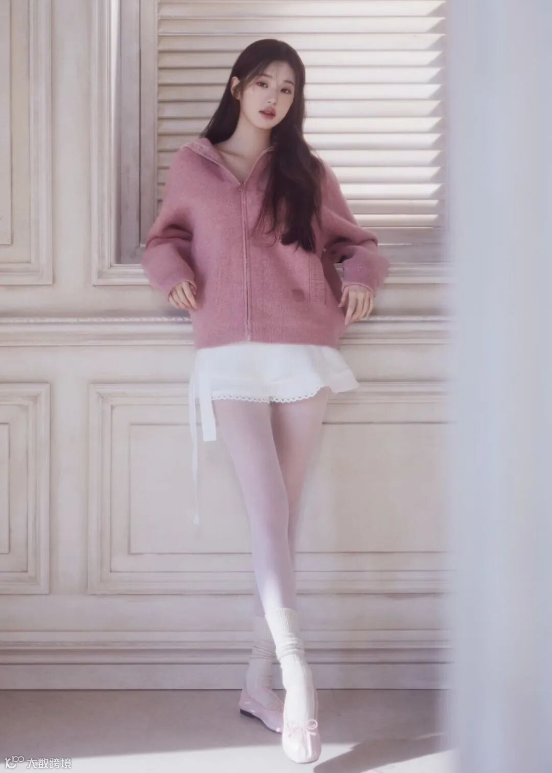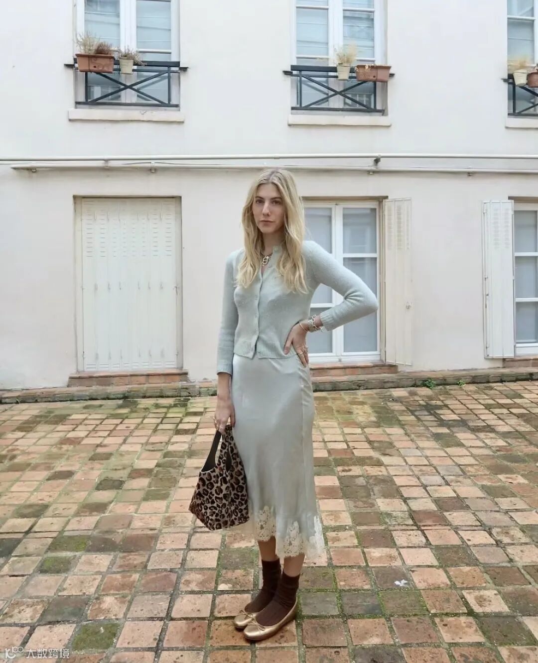 而苹果型身材可以选择堆堆袜搭配,提升腿部的重量感,更能穿出芭蕾鞋的美感。