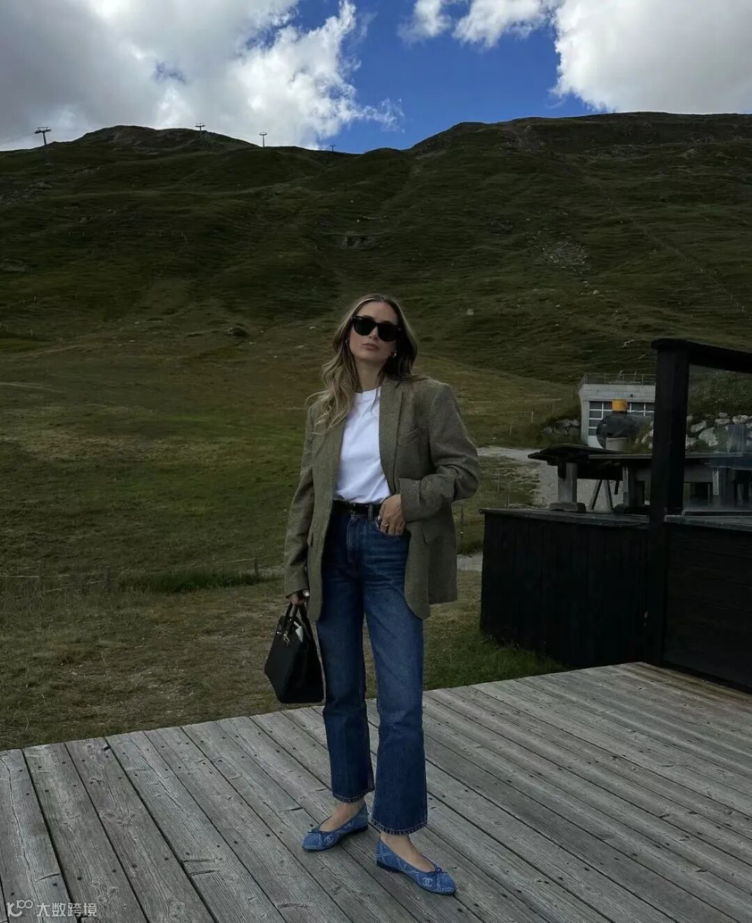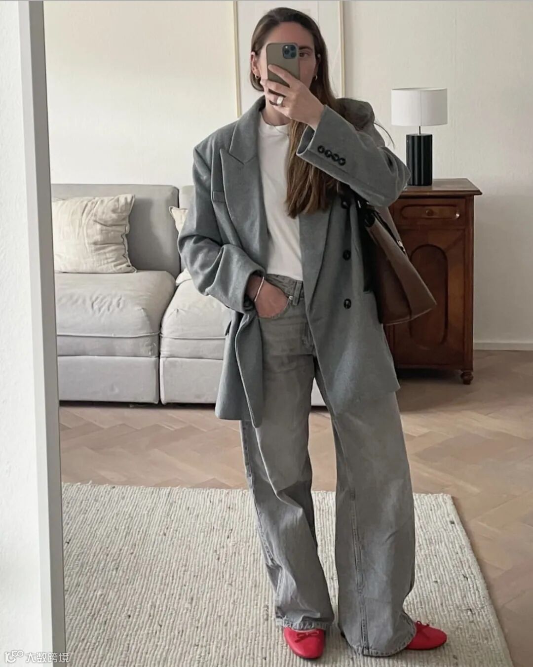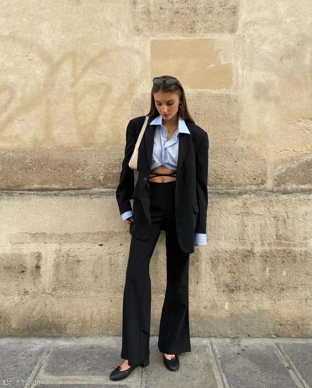 学会将西服穿搭融入日常,既能在正式场合驾轻就熟,又能自在探索广阔天地,搭配芭蕾鞋更显得气质舒展。