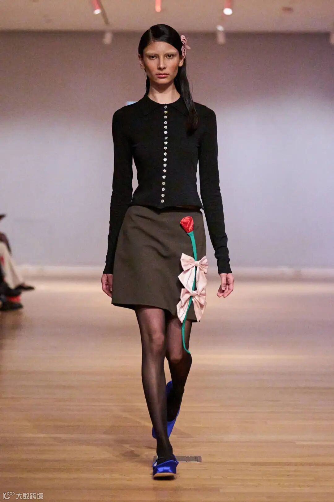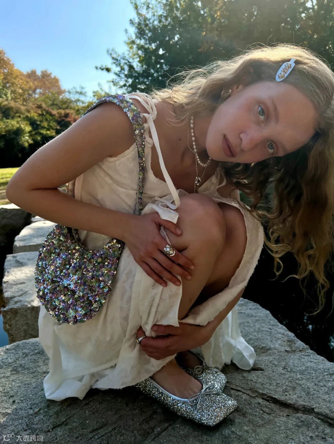 SANDY LIANG春夏秀场各种标志性的蝴蝶结元素和芭蕾鞋适配度很高,梦幻千禧少女风,甜度刚刚好。