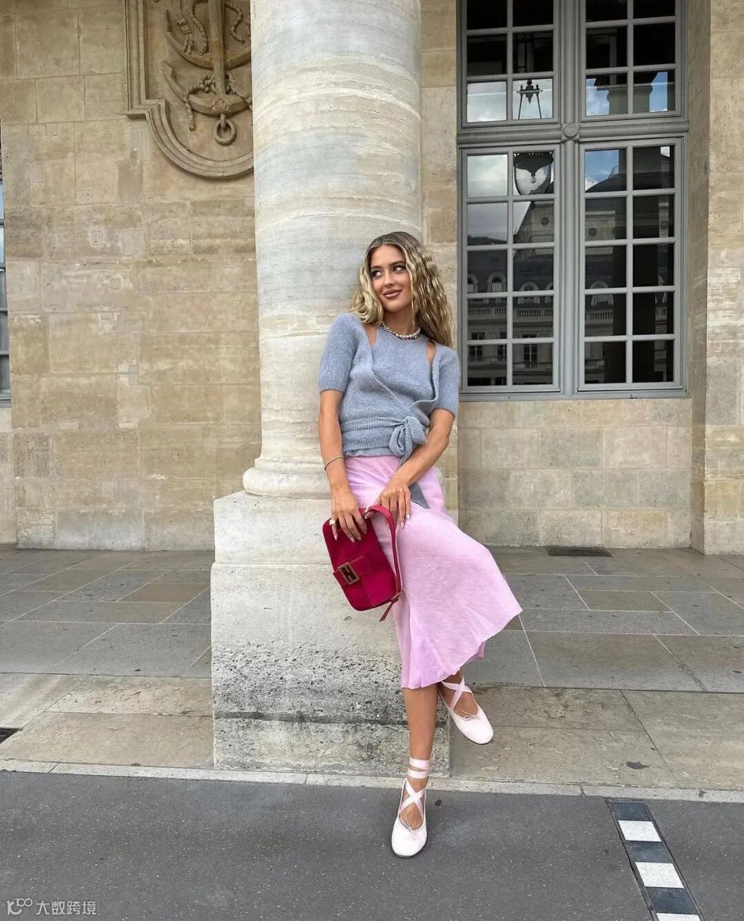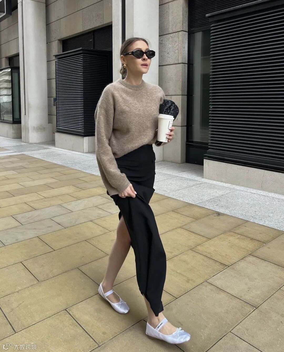 芭蕾鞋近几年的流行穿搭都跟甜美感挂钩,为穿搭注入甜味剂。