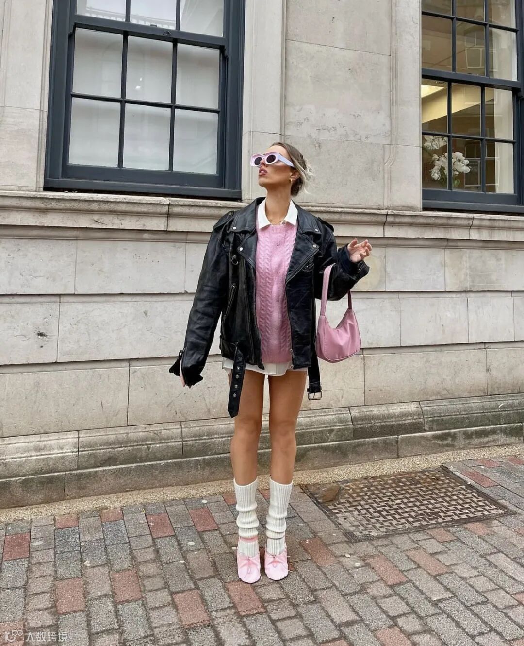 混搭依旧是时下的流行趋势,当酷飒的夹克外套遇上优雅的芭蕾鞋,气场瞬间被融化,两者产生其妙的“化学反应”。