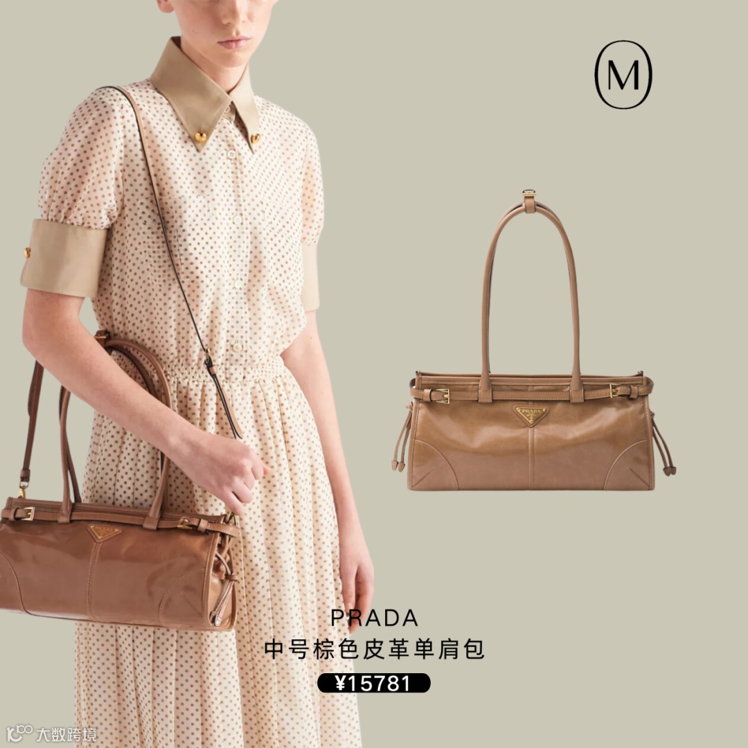 Prada的East-West Bag几乎是很多人一件钟情的款式,做旧感的褶皱纹路皮革加上更纤细的腰带,酷中带着点叛逆的感觉。