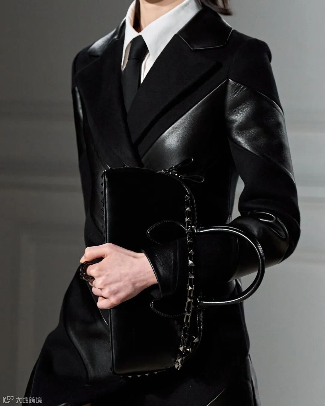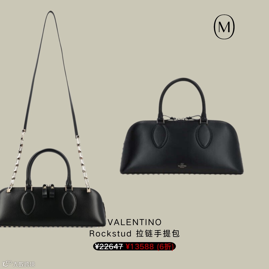 VALENTINO这款East-West Bag包袋和包底部的标志性铆钉设计,个性十足,气质不凡。