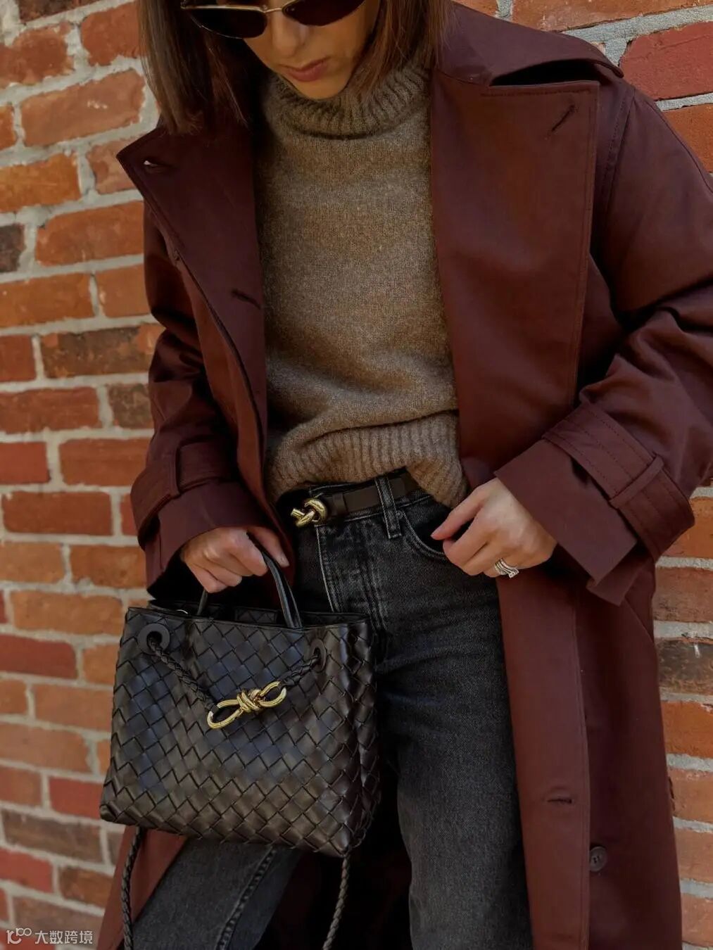 BOTTEGA VENETA的East-West Bag搭配品牌独特的编织工艺细节感满满,自带法式慵懒感。