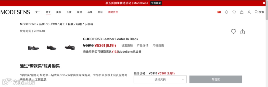 举个例子,当你在网上相中了我们前些日子种草过的GUCCI复古乐福鞋。正值黑五海淘折扣季相信你肯定不甘心原价购入,那么你一定想知道在哪家电商有更低的价格、更好的折扣。你便随手打开了ModeSnes全球合作伙伴GUCCI官网。