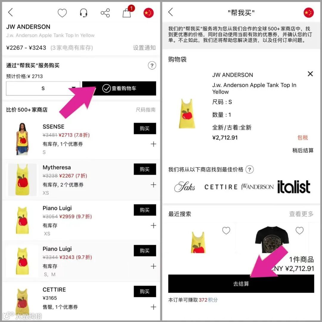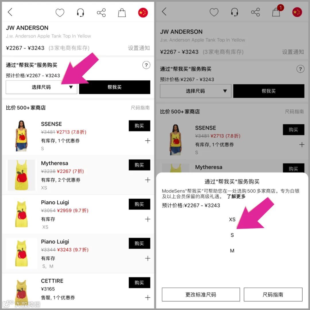 点击加入购物车,此时你将享受到的是全球最低价!同时还有ModeSensVIP帮我买服务~ModeSens帮我买服务会自动帮你选择最低价格下单!