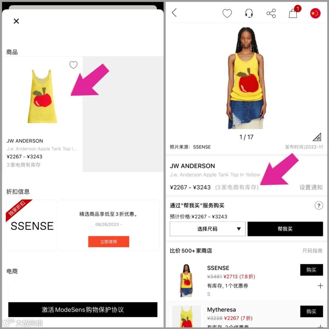 ModeSens全球一共拥有500➕的合作伙伴电商,当你合作电商App浏览时其实ModeSens也在悄悄为你工作呐😊!举个🌰叭~当你在我们合作伙伴SSENSE APP上发现前不久小红书上种草的欣欣子同款苹果针织背心!