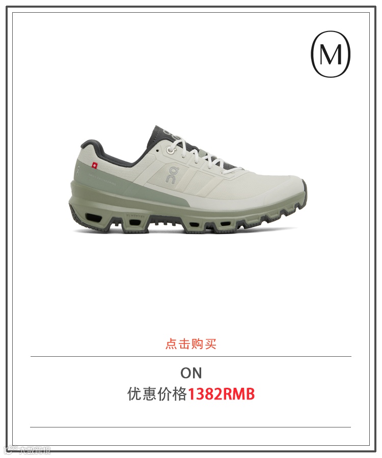 越来越多时髦男娃会选择将功能性运动鞋融入日常造型中,On随之出圈,甚至到了能与SALOMON并驾齐驱的地步。这款Cloudventure越野跑鞋汇集了很多尖端科技,保证穿着舒适度以及顶尖的越野性能。大火的LOEWE X ON合作系列也是以这双Cloudventure为鞋型基础,普通版本拥有更多颜色选择,同时性价比相对来说非常高,是2023最值得入手的真香好鞋。