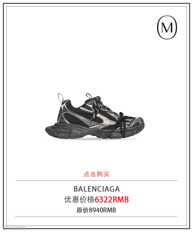 首当其冲的便是爆款制造机BALENCIAGA,设计师Demna拥有出一双火一双的玄幻能力。当下最炙手可热的鞋款便是这款3XL。这款百搭的3XL网布运动鞋呈现醒目的做旧效果,充分体现了户外服饰风格,带来类似于远足与跑步装备的高性能穿着体验。
