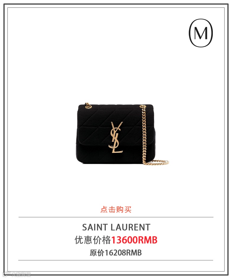 Saint Laurent在我们首个手袋盘点中位列第一,这一法国经典品牌在我们第二季度销量上名列前茅,使得Saint Laurent成为了目前为止本年度最受欢迎的手袋品牌。从我们的数据来看,用户在ModeSens上购买Saint Laurent手袋平均花费1300美元,仅次于第一名Bottega Veneta。Saint Laurent手袋本周销量为其他品牌的两倍之多,这足以说明品牌近年来持续增加的时尚影响力。如果你也想购入一款Saint Laurent 手袋,不妨从本周销量王本绗缝皮革手拿包、Rive Gauche 手提包和经典的 YSL Monogram Satchel手袋中选择。