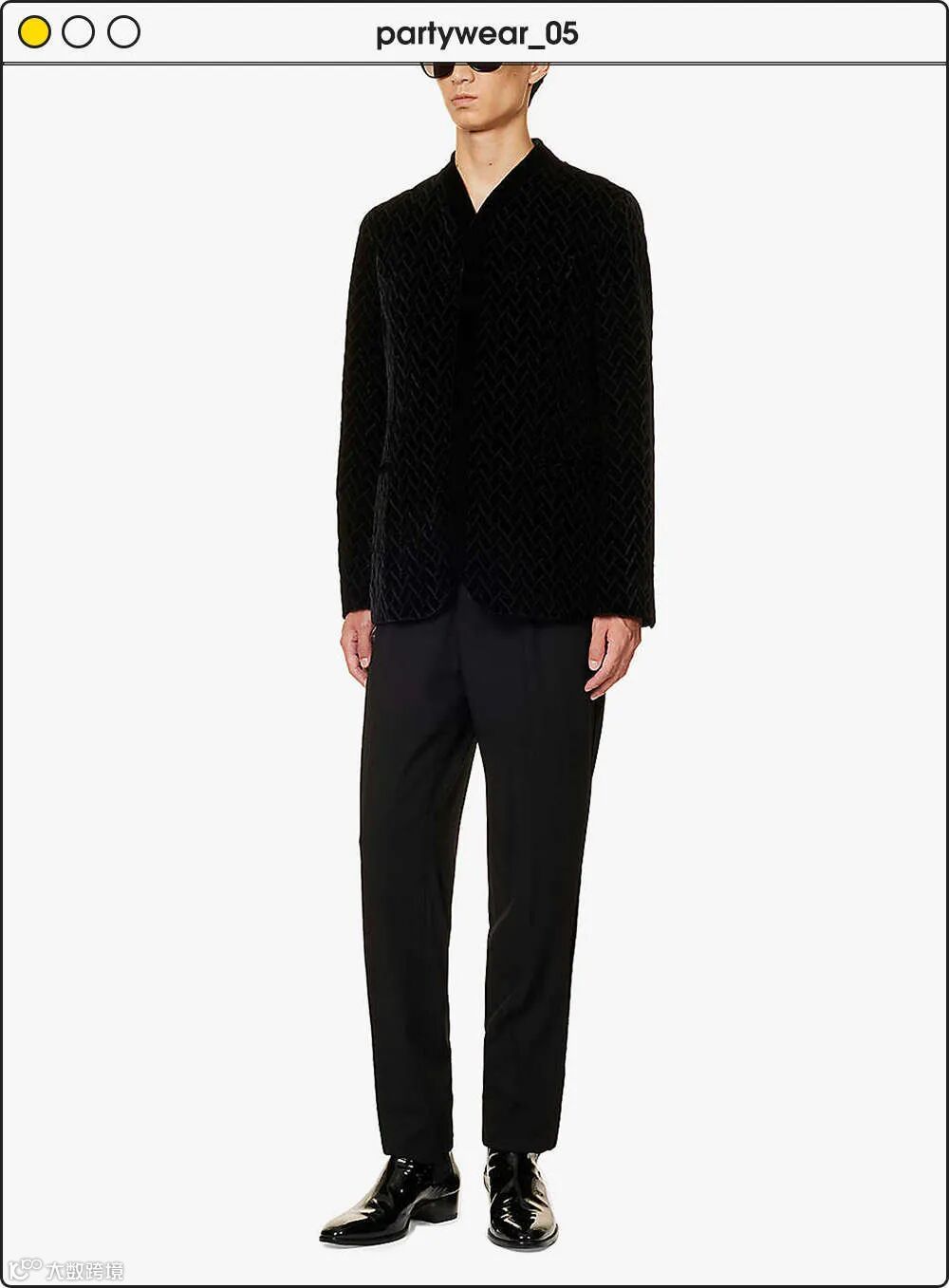 说到宽松的剪裁, Armani是形式的鼻祖。回顾这家时装屋在 90 年代流行的造型,但升级为精致的刺绣,这款无结构西装外套是制作节日天鹅绒的低调方式。保持你的西装裤简单朴素,配饰最少。