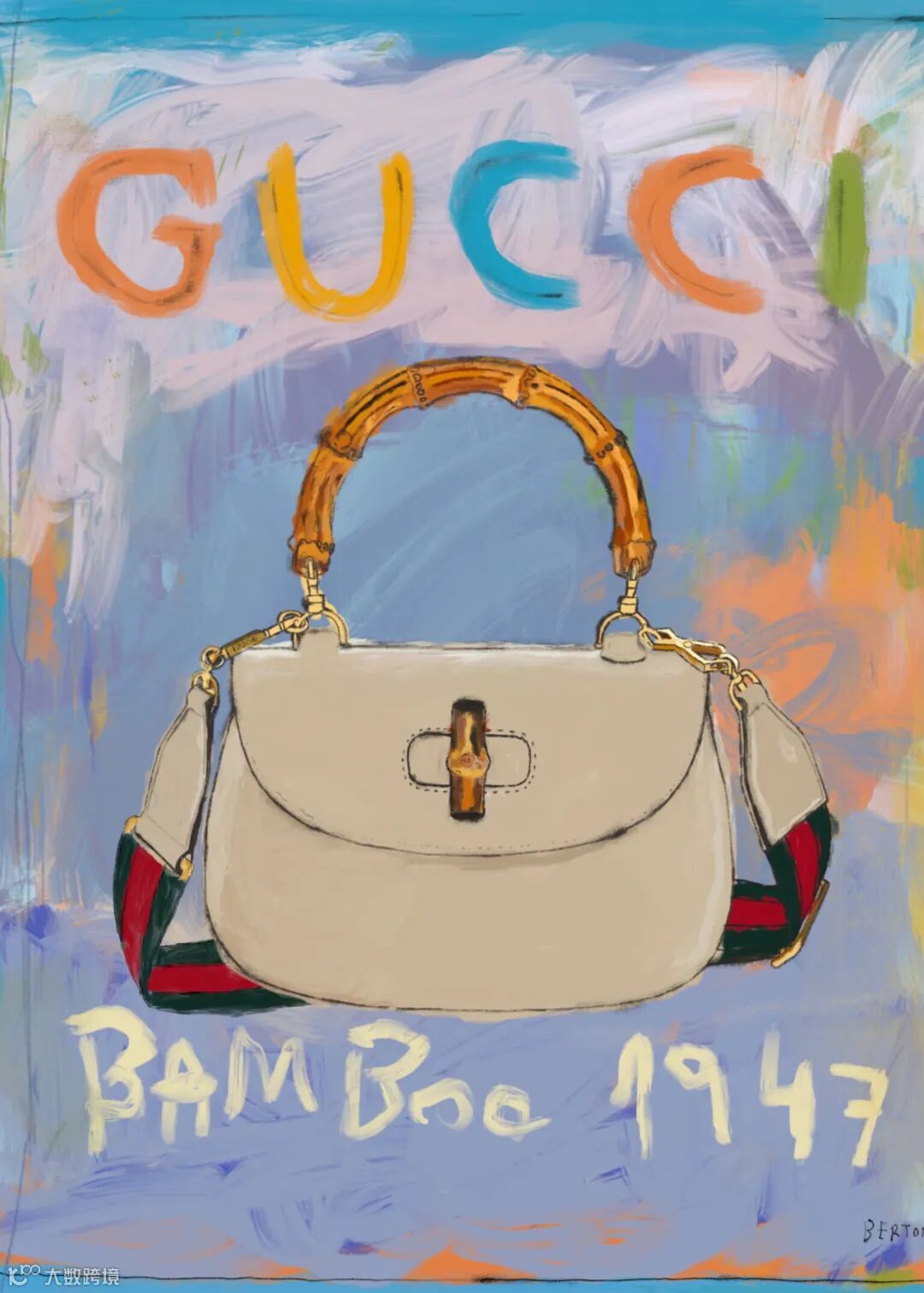 古驰邀请世界各地的艺术家及摄影师以影像、插画、及绘画等多元媒介,对亚力山卓·米开理倾力打造GUCCIi Bamboo 1947系列竹节手袋和GUCCI Diana竹节手袋进行创作,重塑品牌标志性创作,共同赋予其别样魅力。