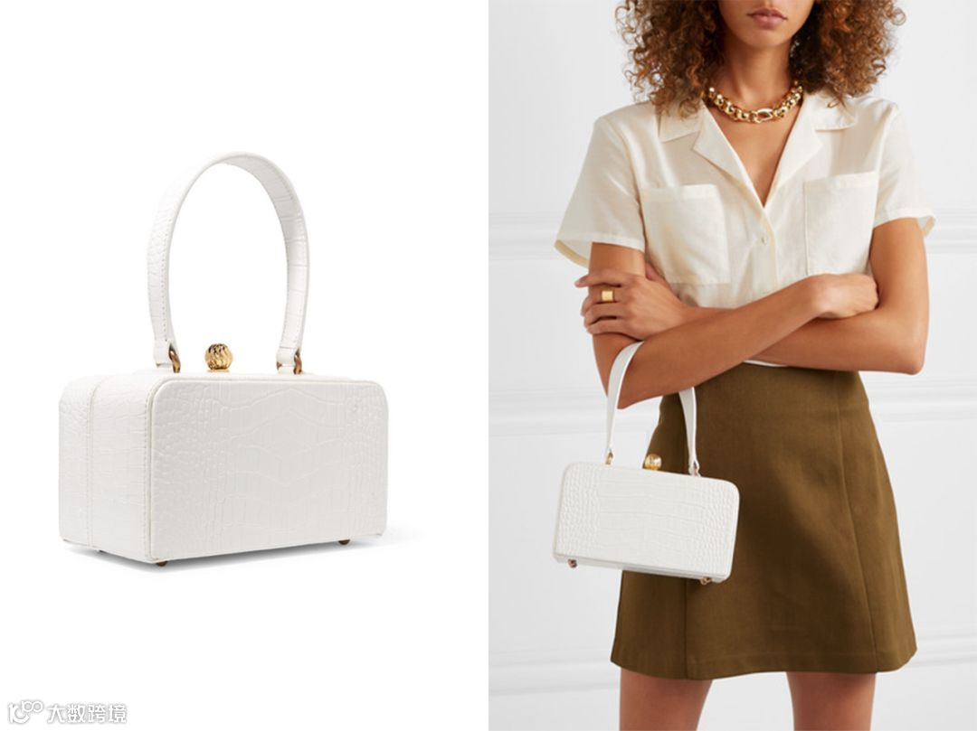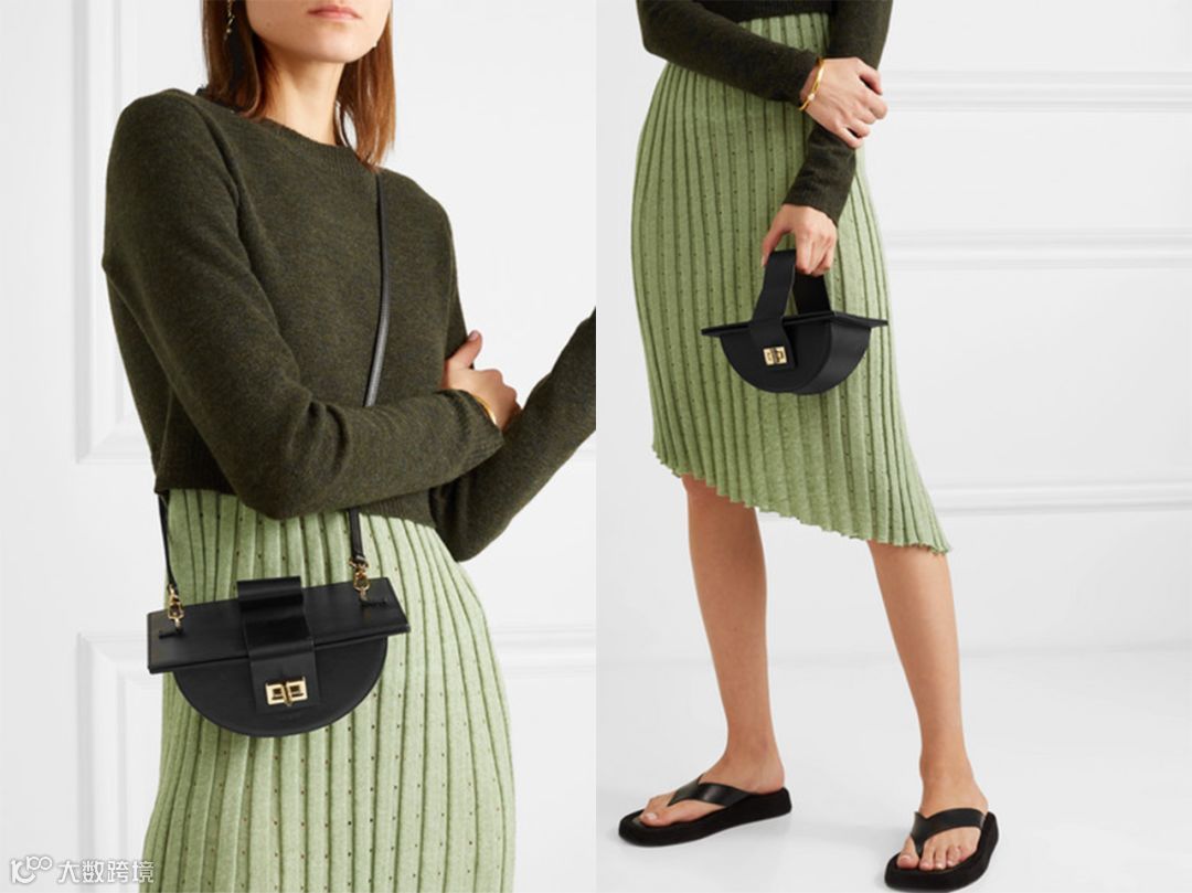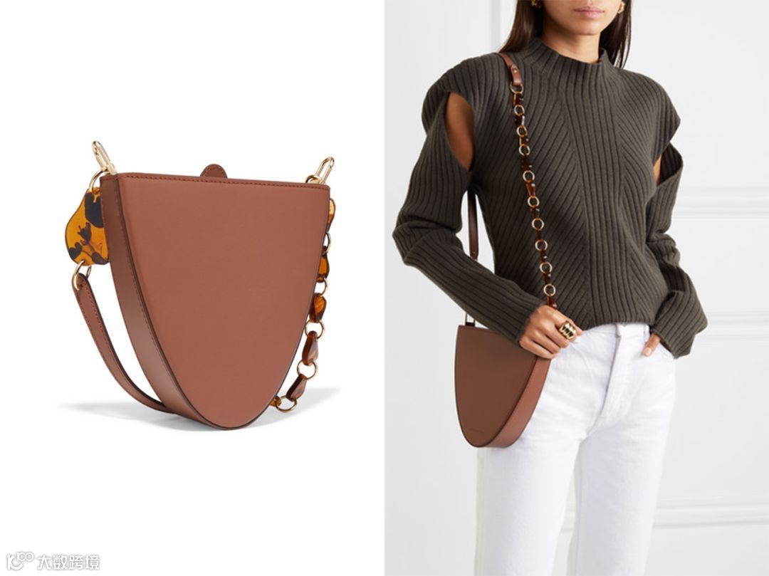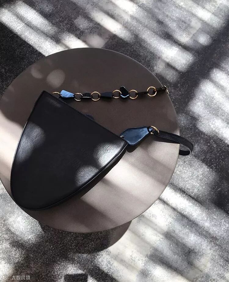 这款包以柔滑的黑色皮革制成,配有亮泽的金色五金。直角与圆弧碰撞出的异形造型令人过目不忘。