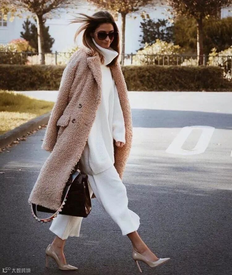 不过也因为毛绒特有的质感,整个的体积很大,很容易穿的臃肿,所以下半身尽量选择一些修身紧凑的单品,会更加的显瘦,一松一紧才能让整体平衡和谐。
