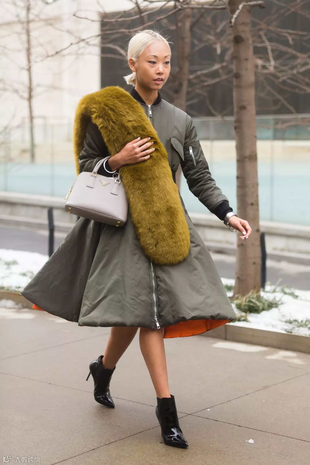 觉得大面积毛绒驾驭不了?可以试试毛绒拼接,适当点缀,又暖和又不会显得臃肿,是一个绝佳的选择。
