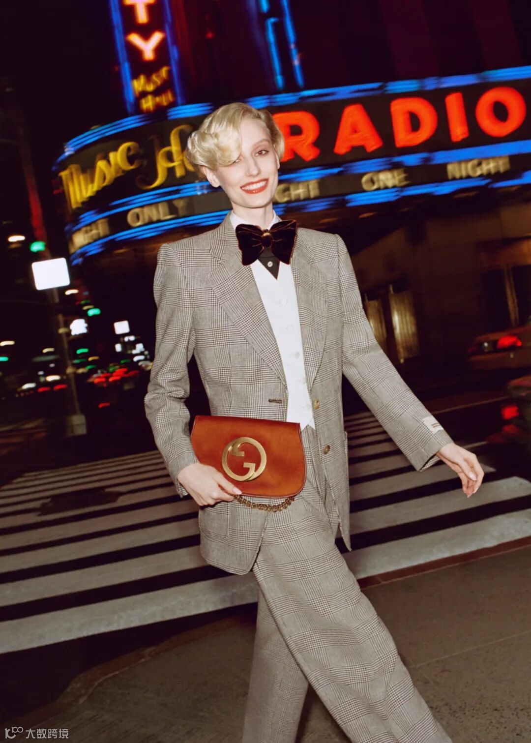 本次广告形象大片由Alessandro Michele提供创作指导,由Angelo Pennetta掌镜,表达了对纽约爱的致敬,并生动展现了城市历史地标。广告形象大片的拍摄地位于当地著名的多个地标建筑附近,纪录片风格的镜头语言唤起人们对时代的追忆,生动呈现经典元素的魅力,并充分演绎Gucci Blondie系列的生动活力,同时彰显品牌隽永的美学设计。