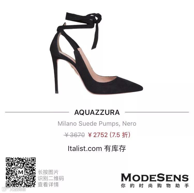 如果和梅根王妃一样对绑带鞋情有独钟,就算盲选Aquazzura 也一定不会错。上面右边西绑带折前3670块,扣后约2752块,也是很良心。