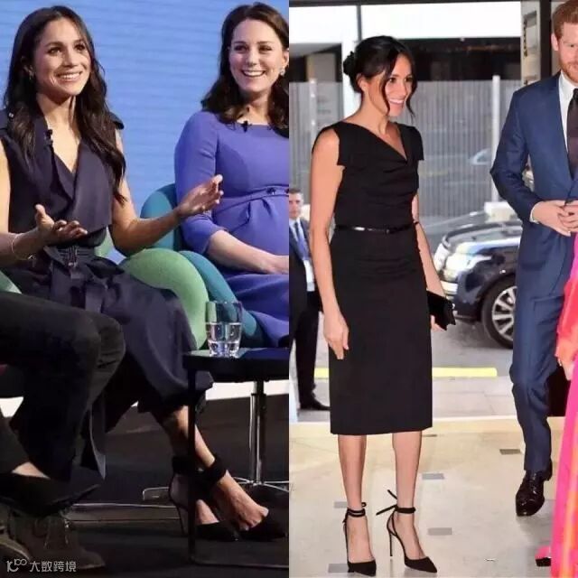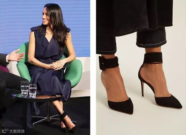 最近刚刚结婚的一位新娘可是Aquazzura 的忠实粉丝,能猜到是谁吗?没错,就是前段时间刚和哈里王子步入婚礼的王妃梅根。左图是她前不久参加皇家基金会论坛才穿的一双Aquazzura 的Casablance高跟凉鞋。右图则是跟朋友见面时穿的一双。
