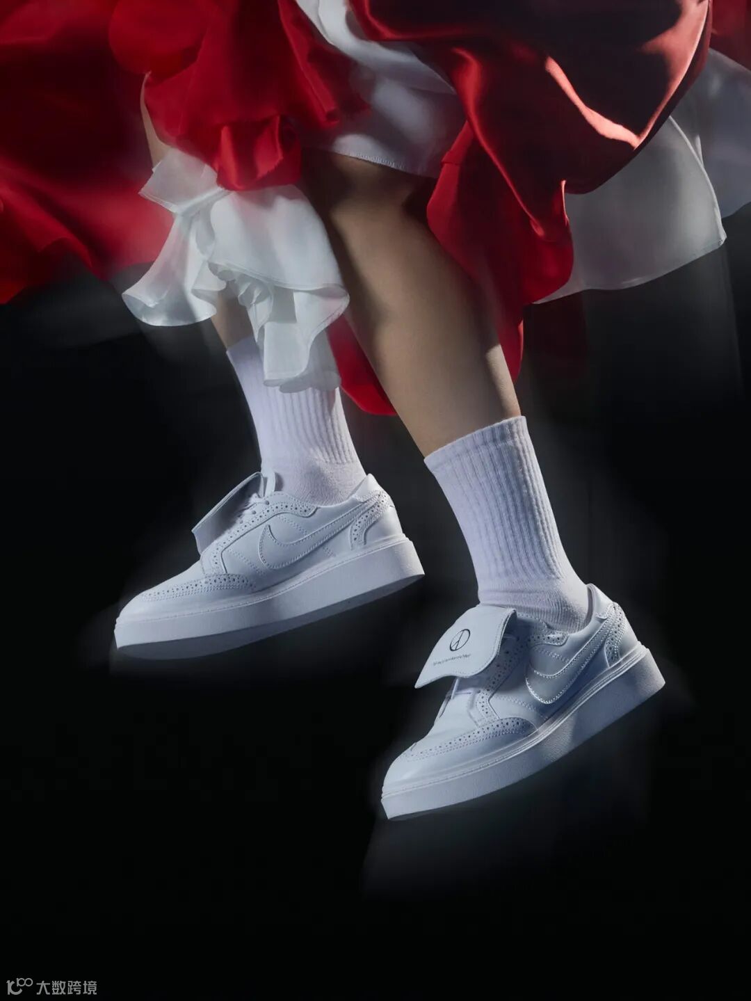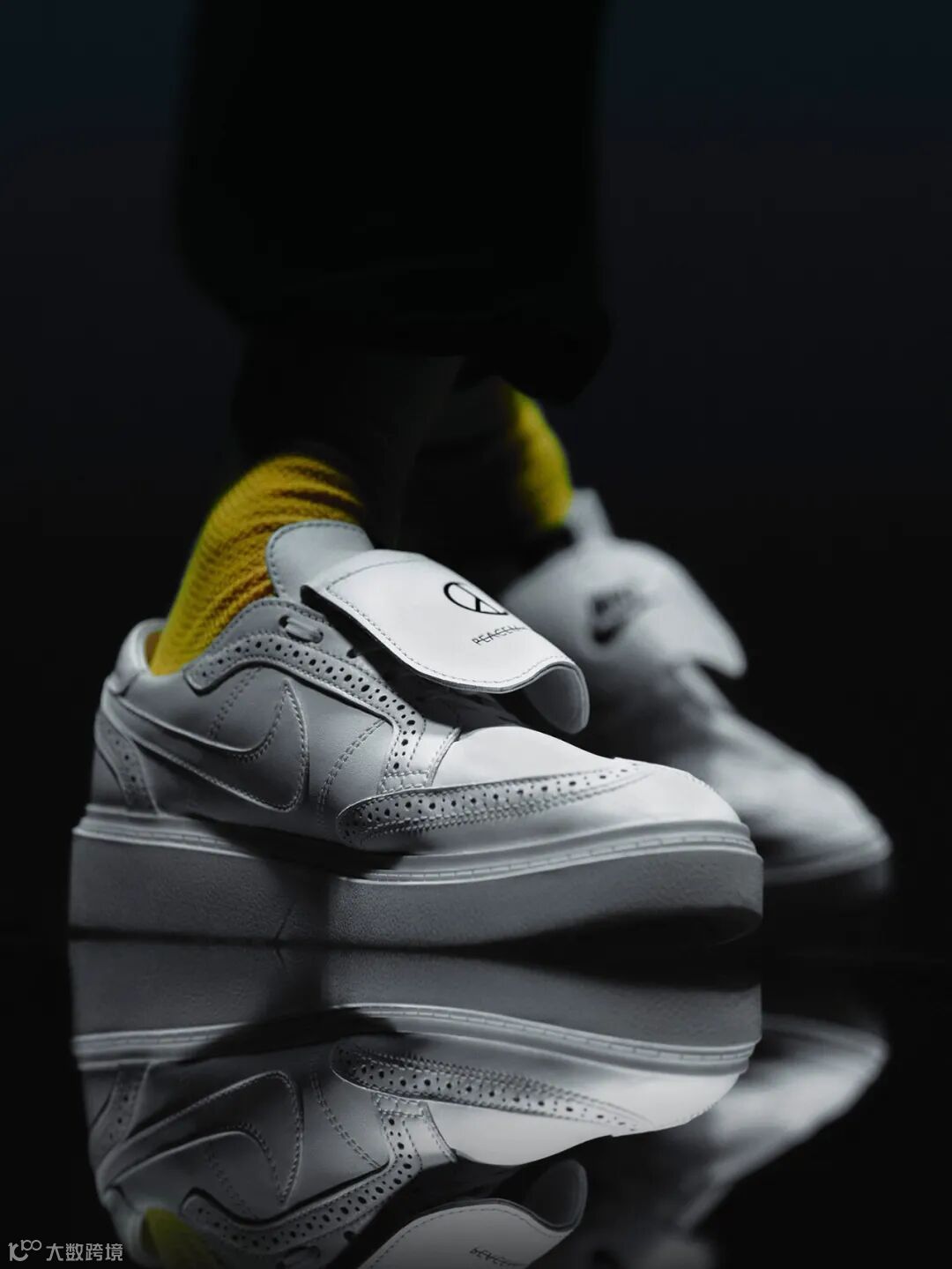 这款运动鞋由优质皮革制成,在鞋尖和鞋跟处有brogue细节,鞋带处有联合品牌的流苏。复古水洗鞋底由耐克专门为Peaceminusone开发。