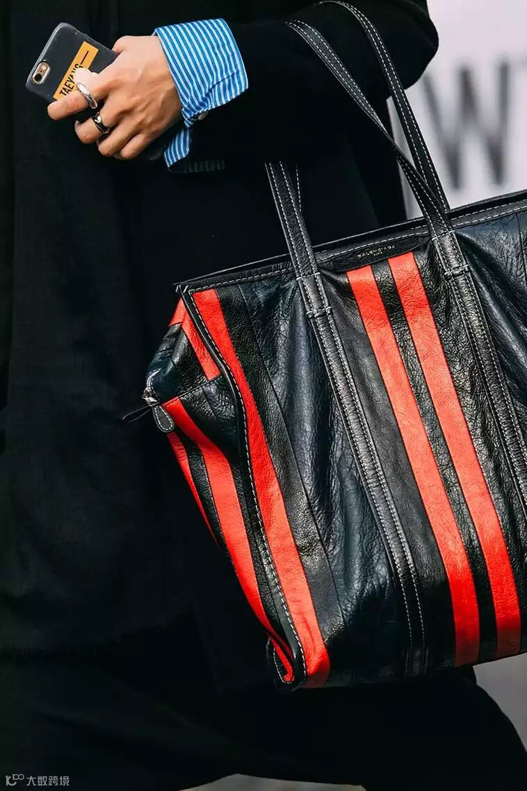 从那些“手慢无”的Triple S老爹鞋和袜靴运动鞋,不难看出本季Balenciaga在Cult风格配饰中的绝对霸主地位。而这只Bazar Bag,灵感则源自泰国街头市场里装杂货的袋子,经过Balenciaga的加持也同样身价倍增,本季重新设计了绿色、奶油与灰色;以及黑色,海军和红色等不同配色组合。搭配经典的飞行员夹克与时髦牛仔,就是最时髦的街头潮男风。