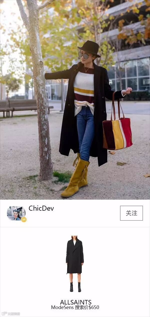 除了与包包同一配色的毛衣,@ChicDev的靴子颜色也选择的很大胆,打眼一看是很突兀的黄色,仔细观察之后,其实很和谐,因为和包包毛衣是同色系,小礼帽是提升时髦感的配饰,但可不是人人都可以戴好的,怎么戴?看下图~