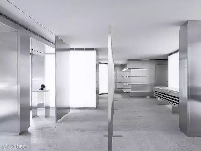 他家的店铺设计 ,也一直以来很出名,非常有自己的调性,有一些甚至有一种在太空站漫步的感觉,进去不禁要起鸡皮疙瘩....这一下子就和众多的轻奢品牌区分开来。