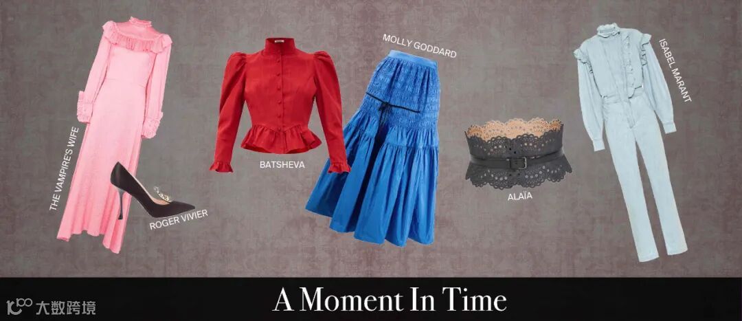 用荷叶边、蕾丝、柔和的颜色和夸张的领口来唤起维多利亚时代的形象。像Zimmermann、Fendi、 Alexander McQueen的设计都融入了当时的女性化元素。穿一件褶边的裙子,束身衣式的上衣,或者缎面高跟鞋,让你更有女人味。