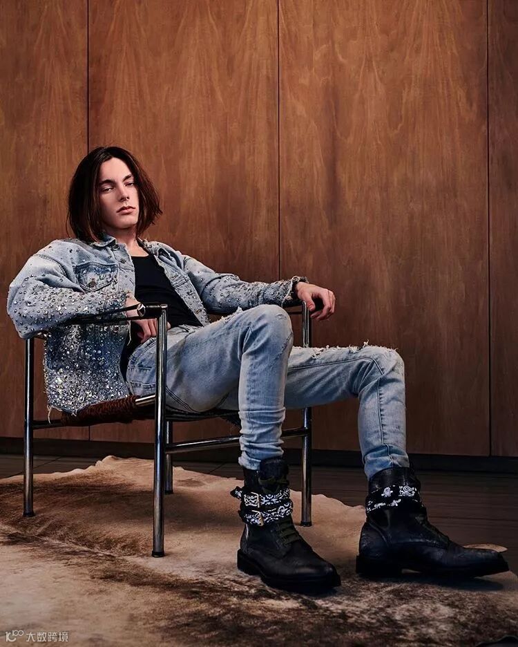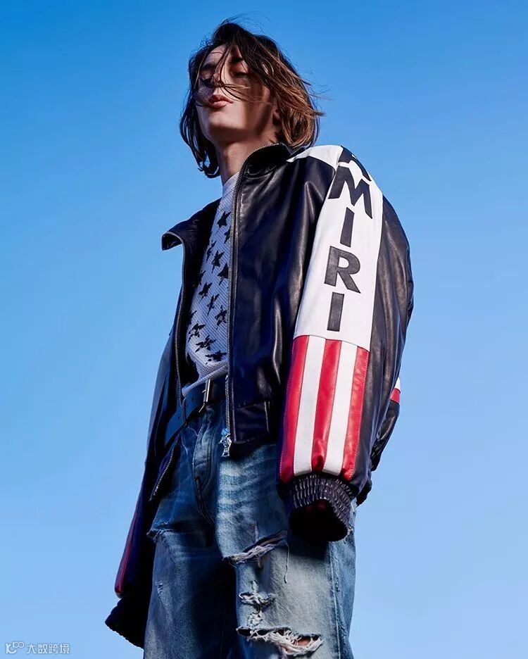 另一个品牌AMIRI看上去更像是一个叛逆的摇滚男孩,但它的牛仔裤却被成为潮人界的梦幻牛仔裤。大面积的破坏可以说是AMIRI最具代表性的设计元素。这一点光是盲吹工艺都不过分。