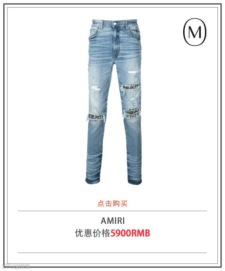 在标志性的撕裂、磨损、实弹穿破等做旧手法处理下,配合着动物纹或是印花图案,通过细节将时尚与精致融为一体。这也充分说明这样一条「贵价」牛仔裤为何却又吸引无数人中邪般的为之买单。