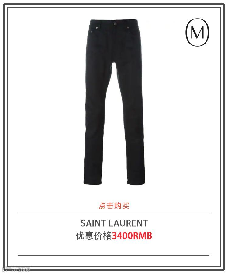 一刀切显然不适合冬季穿着出门跑骚,不如选择一条SAINT LAURENT招牌式剪裁的细身黑色牛仔裤。无论是搭配卫衣球鞋还是西装靴子都是不错的选择。