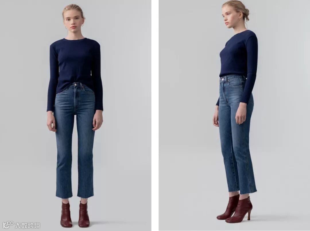 同为高腰设计,Riely的裤脚更窄。如果你更加偏爱利落版型就选它!做旧的细节也让它更具年代感。