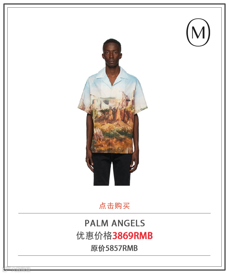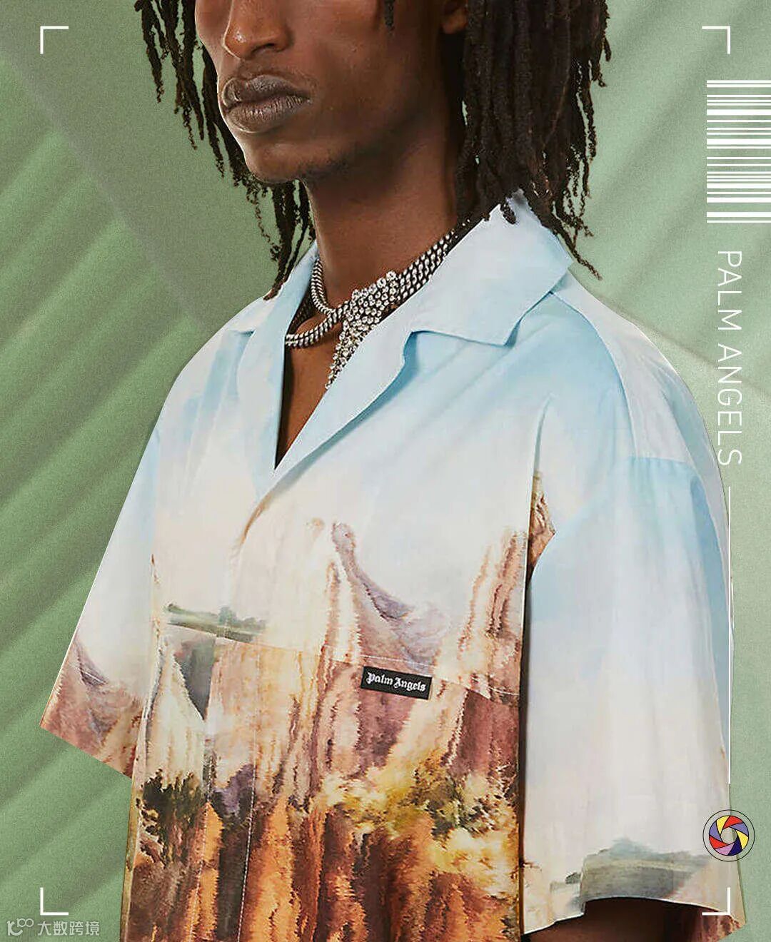洛杉矶品牌PALM ANGELS这款衬衫的户外景观印花极具吸引力,泼绘细节十分精致。版型采用了时下大热的古巴领设计,保证你走在流行最前端。