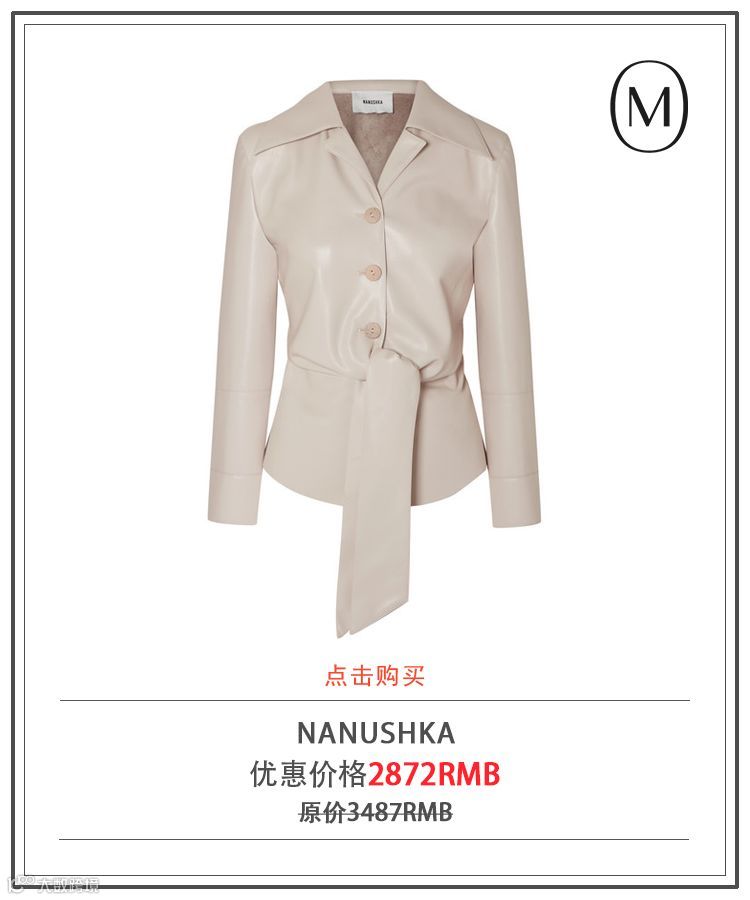说到皮衬衣,必然要说到NANUSHKA这个新兴的时髦品牌。这一季推出的皮衬衫绝对令人无法拒绝。NANUSHIKA擅长为单品添上几笔独特细节,增强实用性能的同时,打造毫不费力的时髦韵致——就像配有抢眼系带的皮衬衣,能打成结饰稍微收束单品廓形。以 1970 年代为灵感的皮衬衣单品裁自品牌经典的纯素皮革,手感十分柔软,全衬里确保贴肤穿着也舒适无虞。