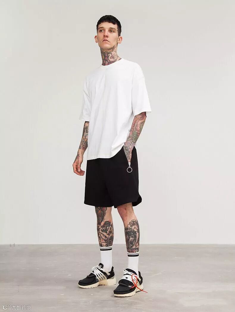 这种露出半截健壮小腿的工装短裤,其实是一件特别具有雄性荷尔蒙的潮流单品。在和T恤的所有搭配单品里,几乎没有哪一件能像它一样毫不费力的衬托出男士们的不羁与强壮。