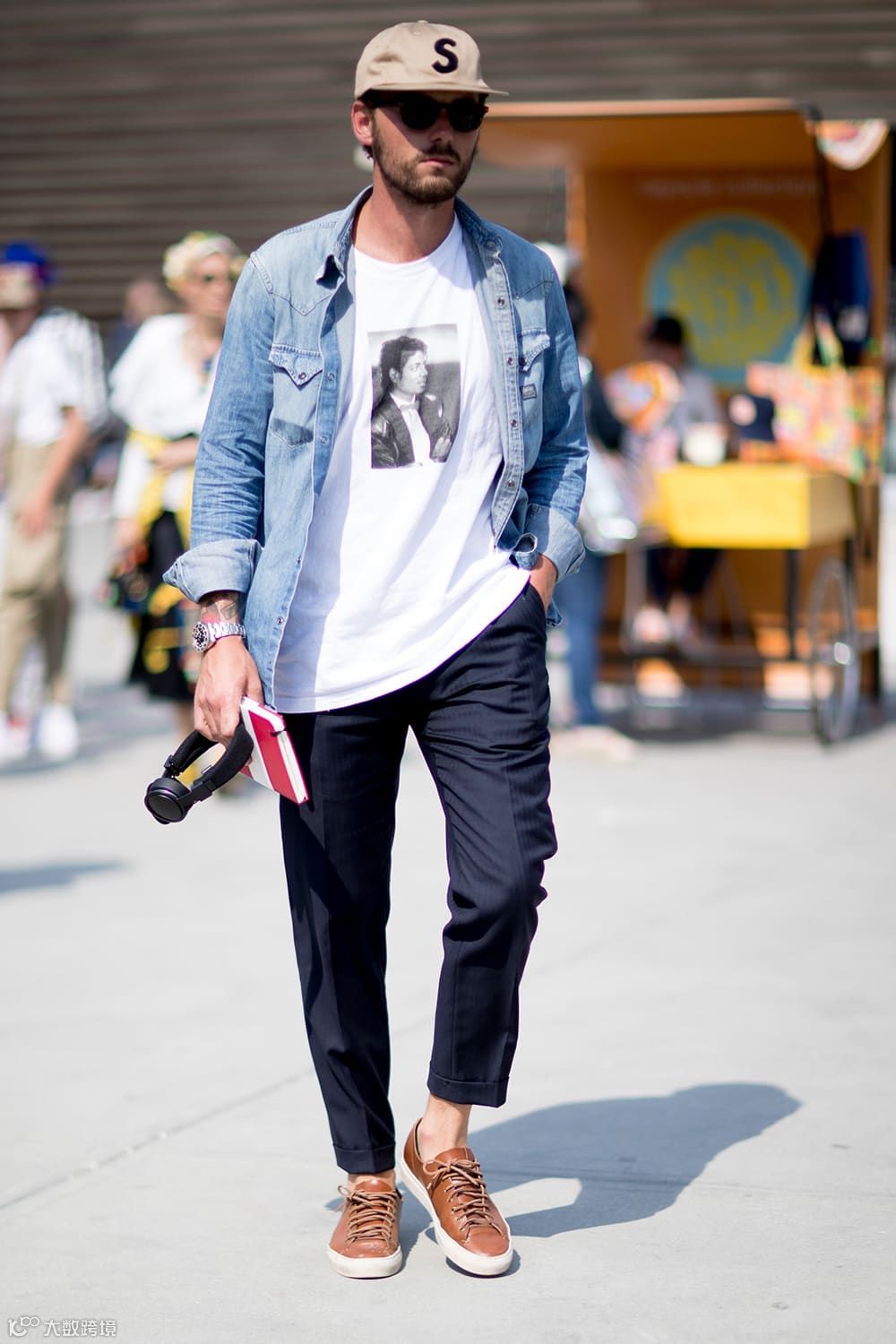 当然,如果你不嫌热,一条瘦筒牛仔裤+稍阔筒牛仔裤+T恤的look也是妥妥的潮人必备。