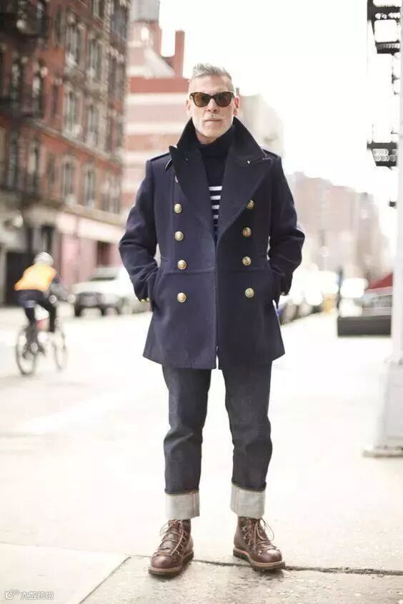 穿着礼仪上Peacoat算不上正式着装,但在日常生活中随意搭配针织或是西装,运用范围及其广泛,彰显十足的粗狂男人味。