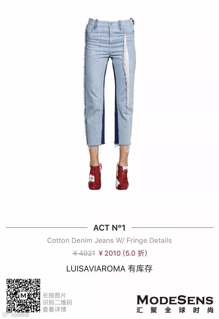 如果说GUCCI是多元文化混合风,那么Act n°1玩的毫不逊色于GUCCI。不但受一众明星潮人追捧和媒体关注,就连意大利版vogue也大肆报道!不但玩转多元化混合风,还别具一格,看这条牛仔裤就知道啦!
