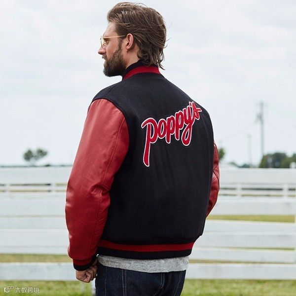KINGSMAN+Golden Bear Poppy皮袖拼接棒球夹克