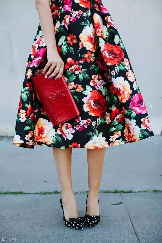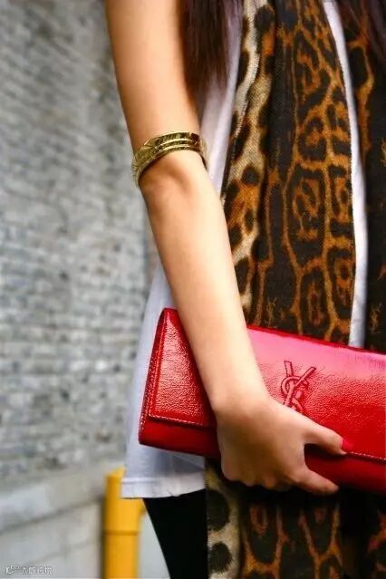 红色就只能搭配素色黑白灰?喜欢比较清新和活力的风格,红色手拿包包搭配碎花裙一样合理。想要狂野热情,豹纹搭配最合适不过。
