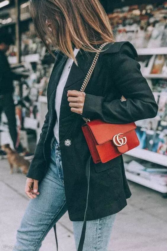 包包的红色元素让整身搭配都亮了起来,新年还是要添点时髦的红~~